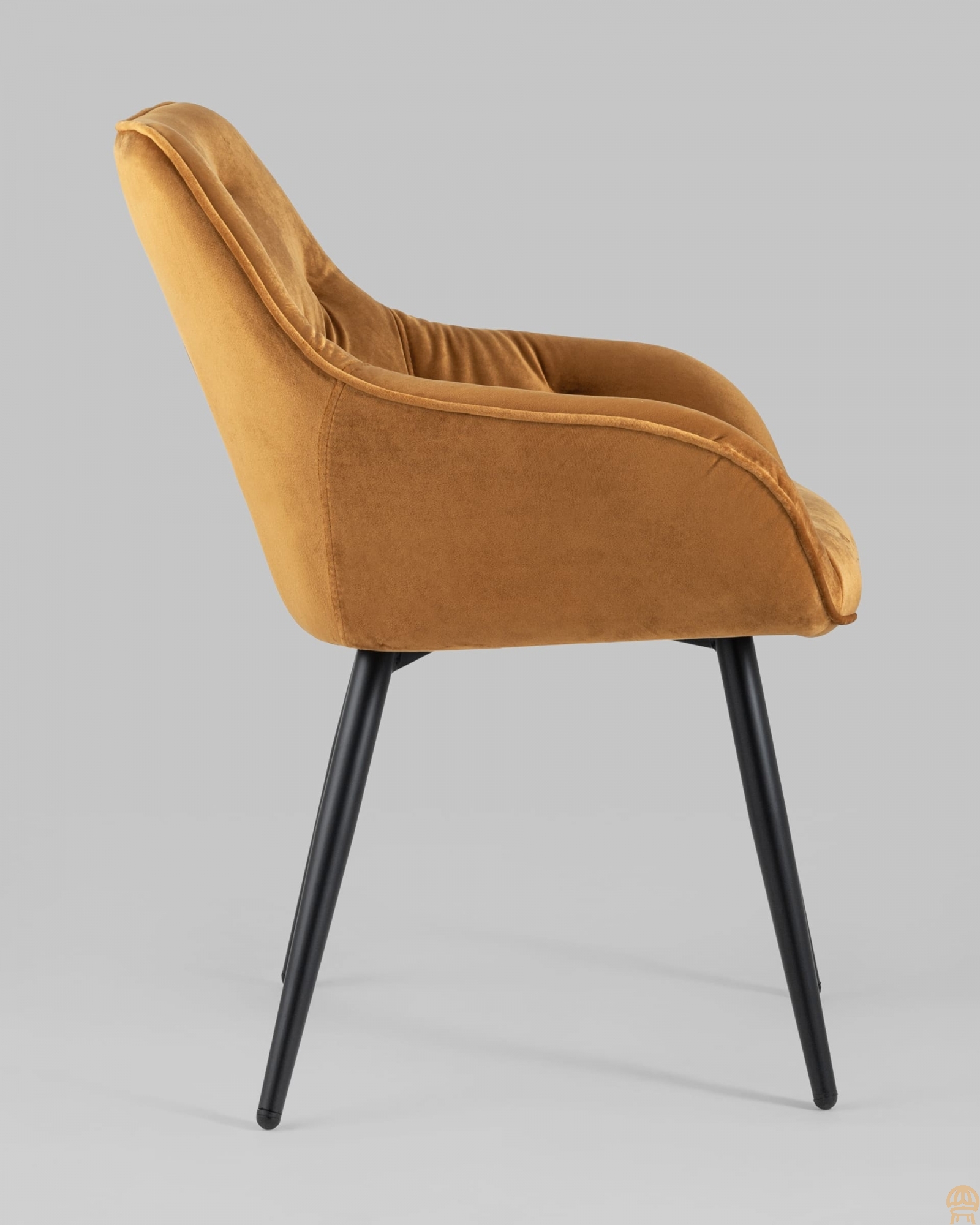 Удобный и мягкий стул украсит любой интерьер. Обивка спинки и сидения выполнена из прочного и износостойкого велюра. Внутренняя сторона стула с декором, удобные подлокотники добавят комфорта. Ножки изготовлены из металла в черном цвете и обеспечивают хорошую устойчивость.Условия покупки