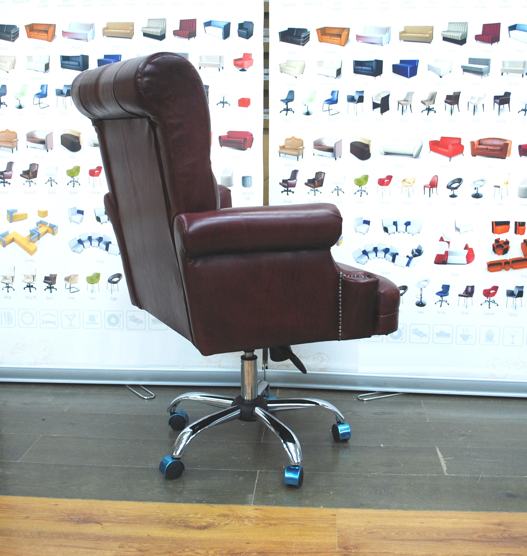 Компьютерные кресла также можно сравнить между собой в нашем шоу-руме и купить Кресло офисное Gruppo 396 Каст на пятилучье хромированном в натуральной коже бордовое, самостоятельно забрав его с нашего центрального склада в г. Екатеринбург. Полный список адресов и магазинов смотрите на странице контактов.