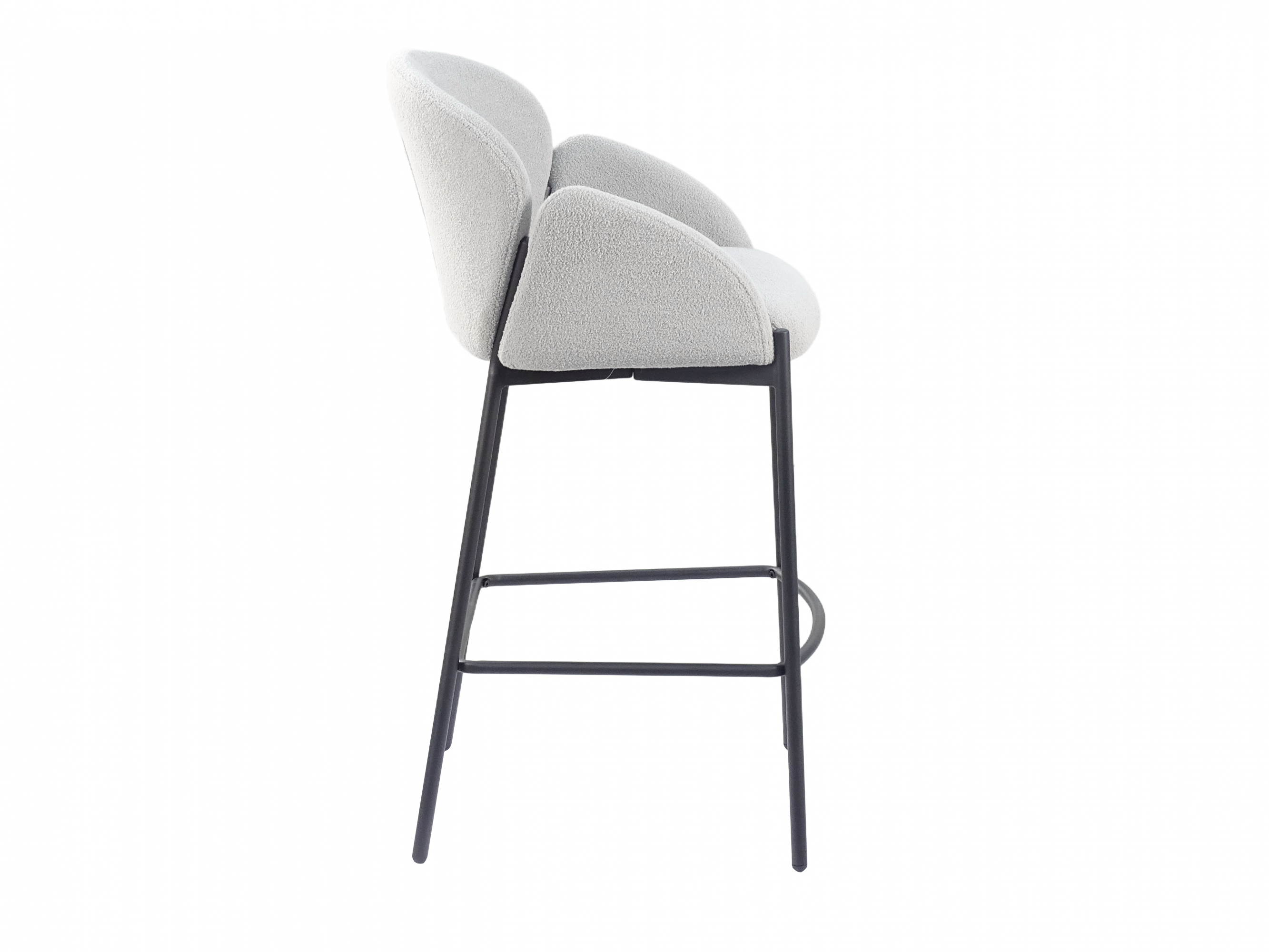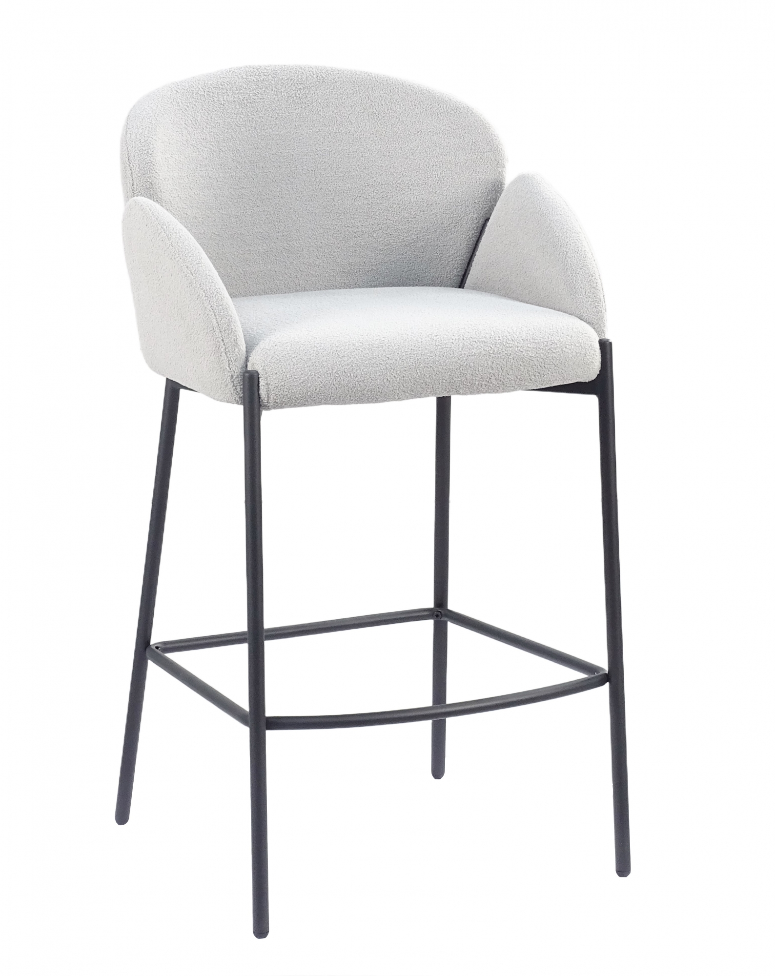 Стул барный Melia стильное сочетание современного дизайна и максимального комфорта. Материалы и комфорт.Сиденье и спинка выполнены из мягкой и тактильно приятной ткани букле, которая добавляет уюта и эстетической привлекательности. Металлический каркас и ножки в черном цвете обеспечивают надежность и долговечность конструкции, выдерживая нагрузку до 120 кг. Мягкие подлокотники создают дополнительное удобство. Дизайн и особенности.Эргономичная форма спинки с плавными изгибами подчеркивает современный стиль и поддерживает комфортную посадку. Подставка для ног интегрирована в конструкцию, делая стул идеальным для длительного использования в домашних и общественных пространствах. Общая высота модели 93 см, что делает ее подходящей для барных стоек и кухонных островков. Стиль и применение.Барный стул Melia выполнен в современном стиле, который подойдет для кухонь, баров, кафе, салонов или лаундж-зон. Универсальный светло-серый оттенок сиденья в сочетании с черным каркасом гармонично вписывается в любые интерьеры. Эта модель объединяет изысканный дизайн, комфорт и практичность, добавляя стильный акцент в ваше пространство.Условия покупки
