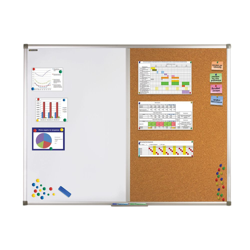 Благодаря качественным фото, исчерпывающей информации о характеристиках и параметрах, а также отзывам покупателей маркетплэйса «Офисная мебель Екатеринбург» купить товар «Доска комбинированная магнитно-маркерная BRAUBERG BRAUBERG для объявлений 90х120 см» категории Офисные аксессуары производства Brauberg с доставкой из Екатеринбурга по цене со скидкой и гарантией от производителя не составит труда.