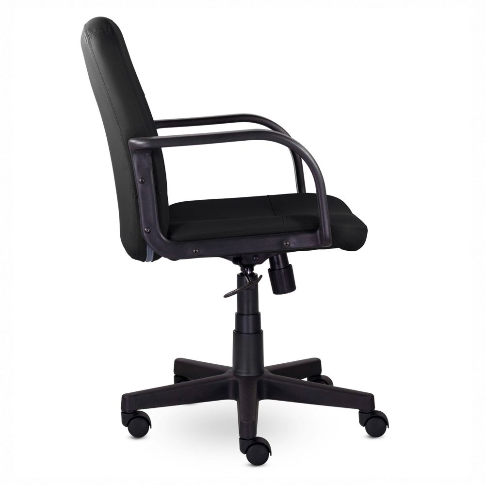BRABIX "Top MG-333" - доступное качественное кресло. Модель оснащена механизмом качания с регулировкой под вес и фиксацией в вертикальном положении. Кресло выполнено в лаконичном современном стиле. Данное кресло коренным образом отличается от аналогов. Его конструкция усилена мощным металлическим кронштейном, соединяющим спинку и сиденье. Этот узел придает каркасу кресла исключительную прочность и надежность, делает кресло более устойчивым, снижает нагрузку на спину, исключает нежелательный люфт. В обивке кресла использован материал кожзам, практичный и неприхотливый в уходе. Надежный механизм "Top Gun" гарантирует хорошую поддержку спины и комфорт за счет возможности свободного качания с фиксацией в одном рабочем положении и регулировкой усилия качания под вес сидящего, позволяет регулировать высоту сиденья. В основании кресла - прочное пластиковое пятилучие и надежный газпатрон. Конструкцией предусмотрена нагрузка до 100 кг.Условия покупки