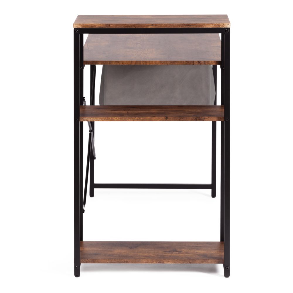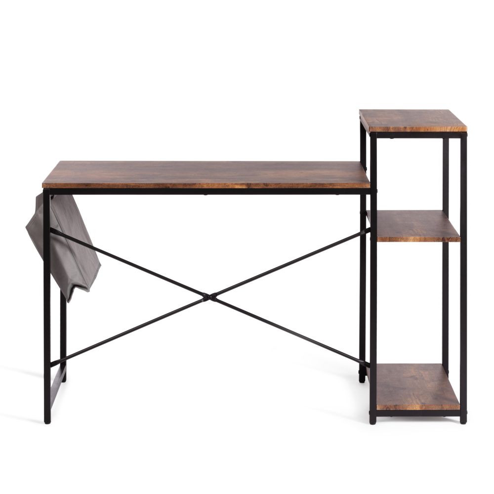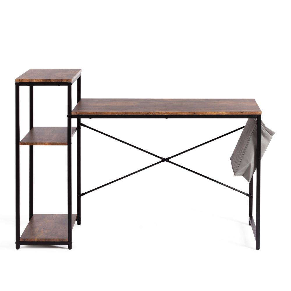 Компактный компьютерный стол WD-15 станет отличным решением для любого рабочего кабинета и отлично впишется в обстановку дома или офиса, сочетая в себе функциональность и уникальный внешний вид. Каркас модели выполнен из металла с порошковым покрытием, которое защищает поверхность от влаги, предотвращает появление ржавчины. Прямоугольная столешница из МДФ толщиной 15 мм имеет долгий срок службы, устойчива к механическим повреждениям и термическому воздействию. Надежные ножки регулируются по высоте для устранения неровности пола. В стол интегрирован небольшой стеллаж. Нижние полки можно использовать для хранения документов, папок, канцелярских принадлежностей, различных аксессуаров, а на верхнюю полку можно поставить монитор. Оригинальное сочетание черного металлического каркаса и коричневой столешницы в текстуре burnt выглядит стильно и гармонично. Модель WD-15 в стиле лофт не нуждается в сложном уходе, будет радовать вас своим первоначальным видом на протяжении длительного времени. Стол поставляется в разобранном виде, требуется простая сборка по прилагаемой инструкции. Модель может быть дополнительно укомплектована стеллажами WS-01 и WS-02 в текстуре burnt.