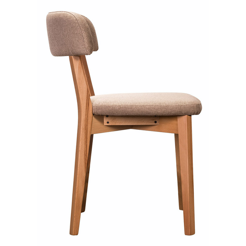 Стул в скандинавском стиле - универсальная вещь. В нем нет выраженной привязки к определенному стилю и помещению. Он выглядит добротно и благородно, что соответствует классике, но не чуждо модерну. Пожалуй, только для восточной экзотики скандинавская сдержанность не уместна. Стул для кухни и в гостиной будет хорошо смотреться, ведь изделие не внесет в дизайн комнаты резких перемен. Скорей, дополнит стильным штрихом. Светло-коричневый тон букового дерева - расцветка, созданная самой природой, не надоест никогда. Это важный момент, ведь мебель из натурального массива будет служить не одному поколению семьи. Скромный светло-коричневый цвет обивки прекрасно сочетается с натуральной фактурой дерева. Мягкая спинка изогнута, повторяет очертания спины человека, равномерно распределяя нагрузку на позвоночник. Сиденье тоже мягкое. Несколько часов за работой или застольем на удобном обеденном стуле пролетят не заметно.