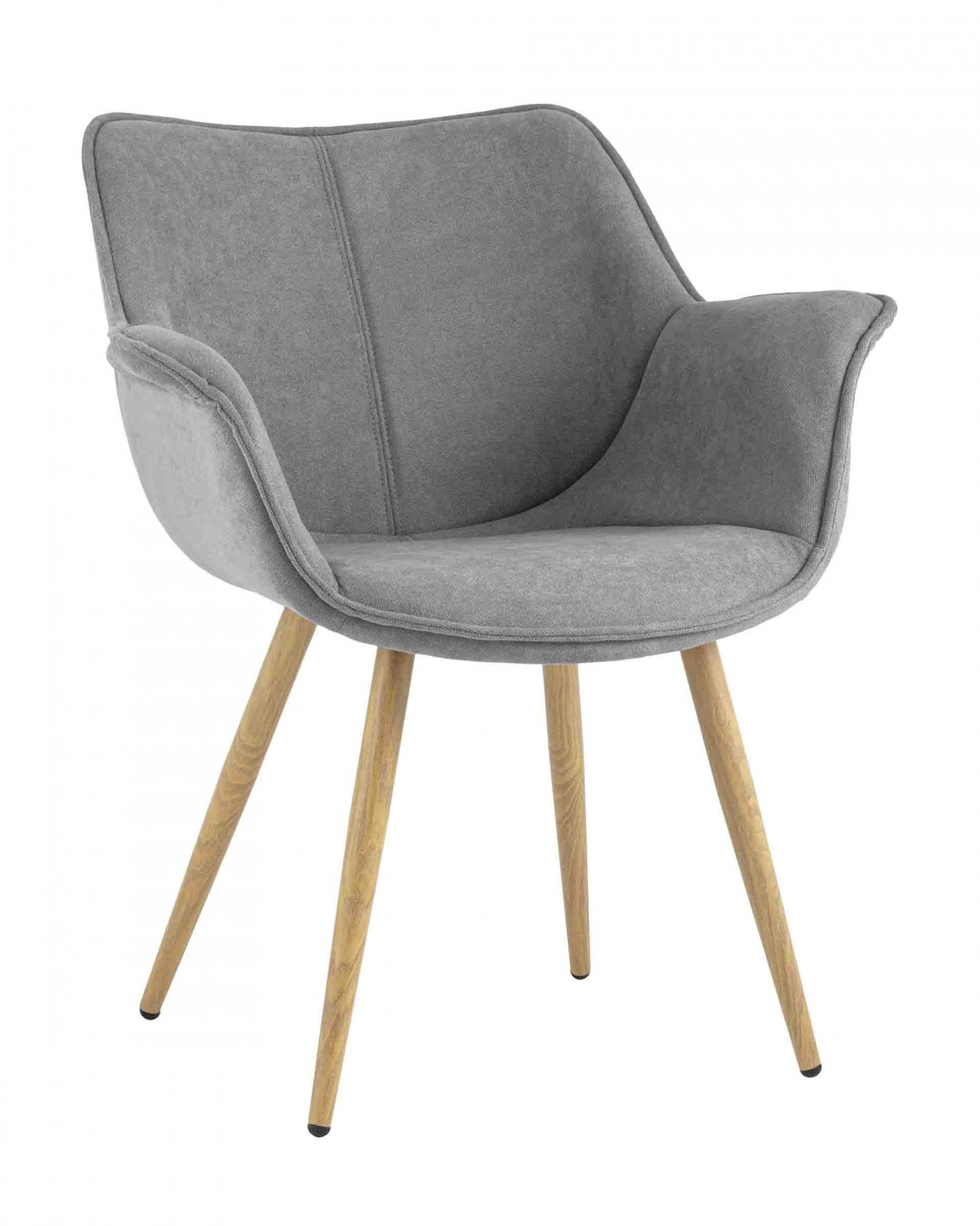 Стильный мягкий кухонный стул с удобными подлокотники. Красивый дизайн украсит как столовую зону, так и бьюти-уголок или рабочее место. В качестве обивки используется ткань шенилл, плотный износостойкий материал с бархатистой структурой, приятный на ощупь. Крепкие металлические ножки, стилизованные под натуральное дерево, способны выдерживать большие нагрузки. На ножках дополнительно предусмотрены специальные подпятники, которые предотвращают скольжение и повреждение напольного покрытия.Условия покупки