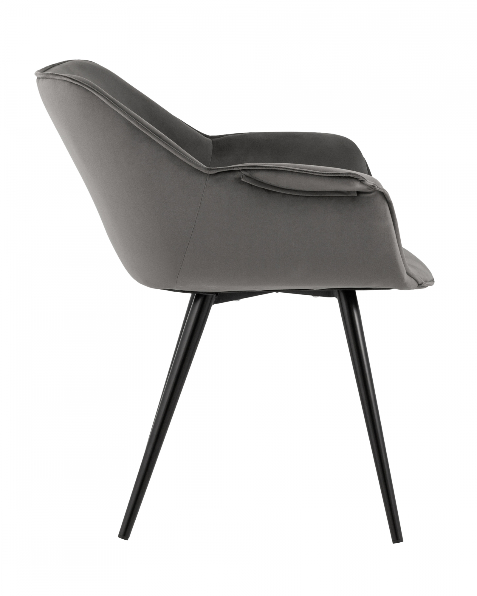 Стильный и мягкий стул имеет широкую эргономичную спинку и удобные подлокотники. Благодаря лаконичному дизайну такой стул прекрасно дополнит современный интерьер. Мягкая обивка выполнена из велюра - прочного, износостойкого материала. Ножки изготовлены из металла в черном цвете.Условия покупки