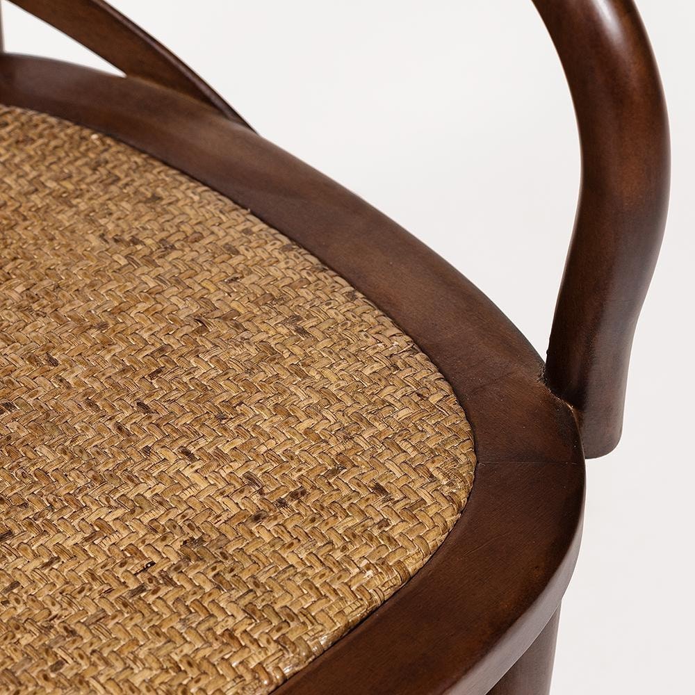 Легкий и элегантный дизайн, простые линии и естественные цвета классического венского стула Secret De Maison CROSS украсят собой любую домашнюю обстановку. Модель выполнена в стиле классического венского стула Михаэля Тонета, который в начале XIX века спроектировал его, используя технологию гнутья древесины. Сочетание плетеного сиденья из натурального ротанга и каркаса из массива березы, покрашенного в цвет темный орех, придает стулу особенную красоту и оригинальность. Эргономичная спинка, удобное сиденье и высокие подлокотники позволяют комфортно сидеть в течение длительного времени. Конструкция изделия разработана с учетом равномерного распределения нагрузки. Натуральный ротанг и массив березы – прочные и долговечные материалы, не требующие специального ухода, способные выдерживать большую нагрузку. Стул будет радовать вас своим первоначальным видом долгие годы. Модель идеально сочетается с мебелью из коллекции THONET, поставляется в собранном виде. Страна-производитель: КИТАЙ