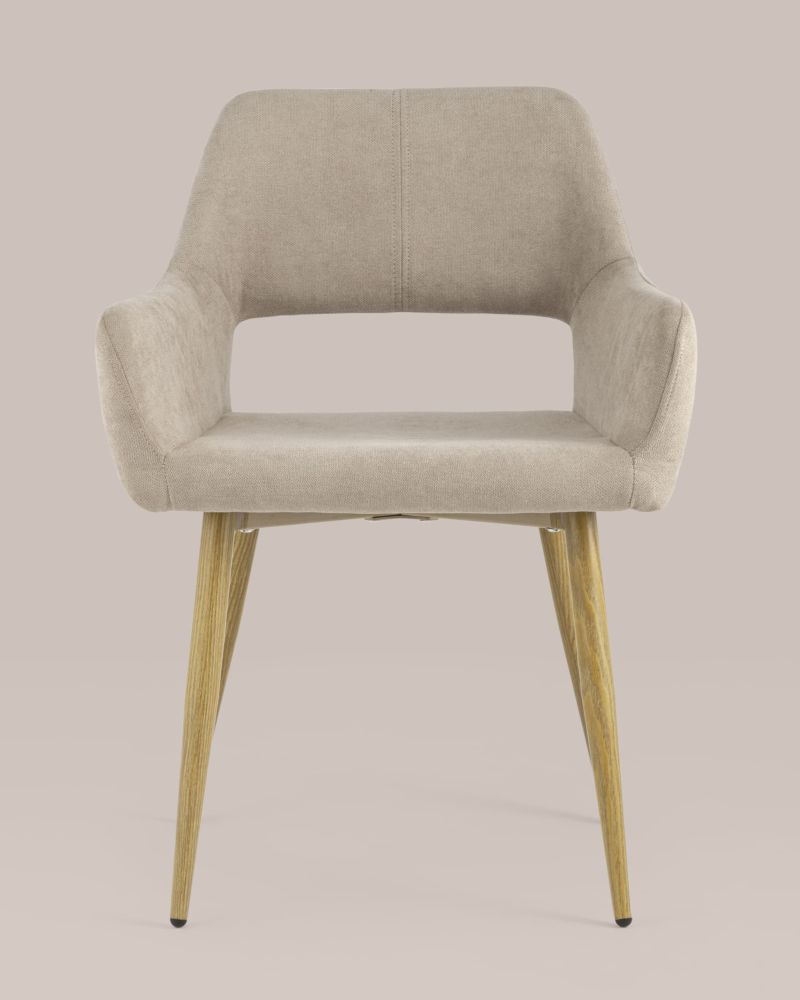 Стильный и мягкий кухонный стул имеет широкую эргономичную спинку и удобные подлокотники. Обивкой послужила высококачественная плотная ткань. Ножки металлические с принтом под дерево.Условия покупки