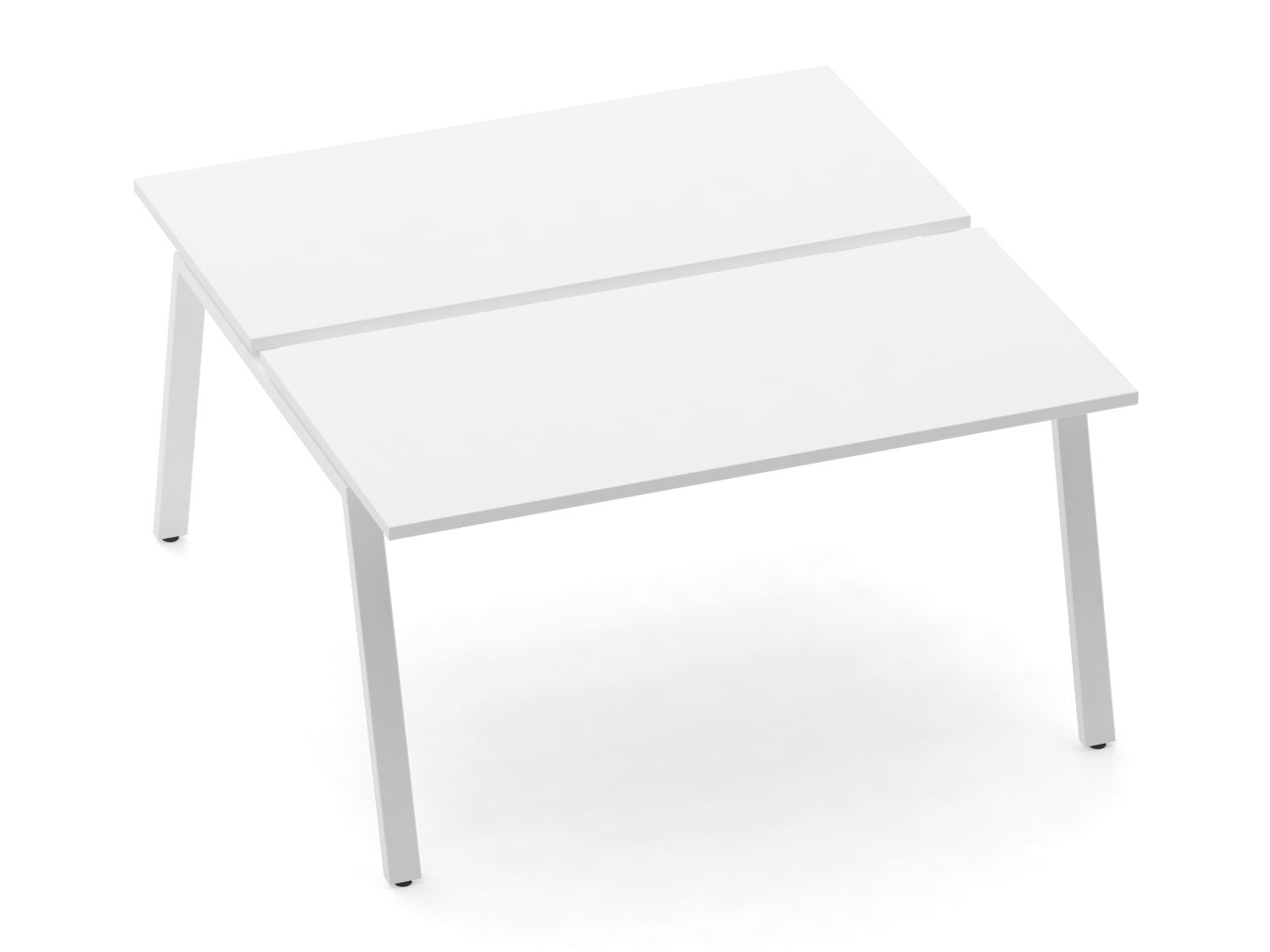 Рабочий модуль на Л-образном металлокаркасе. Столешницы выполнены из ЛДСП толщиной 22мм с кромкой ПВХ 2мм. В производстве используется экологически чистая ДСП покрытая износостойким ламинатом класс эмиссии Е1, производство Россия. Металлокаркас разборной конструкции, сечением 60х30мм, алюминиевый металлик матовый муар. Столешница немного приподнята над каркасом, что создает эффект парения.