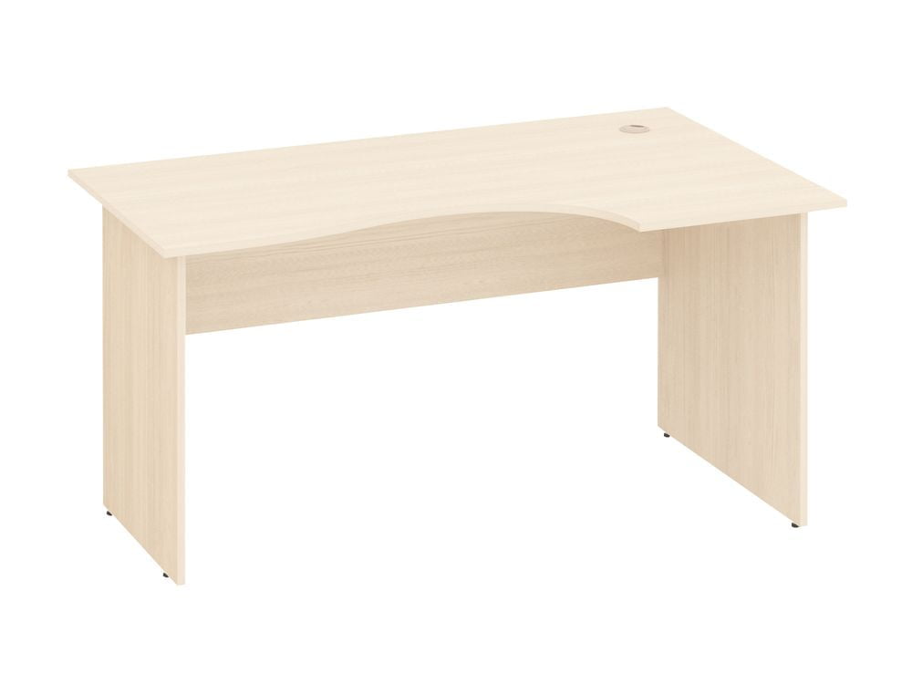 Стол угловой эргономичный. Столешница и боковины данной модели выполнены из высококачественного ЛДСП с тиснением, толщиной 18мм. Все торцы обработаны противоударной кромкой ПВХ 2мм. Основная царга офисного стола может устанавливаться с краю или по центру.