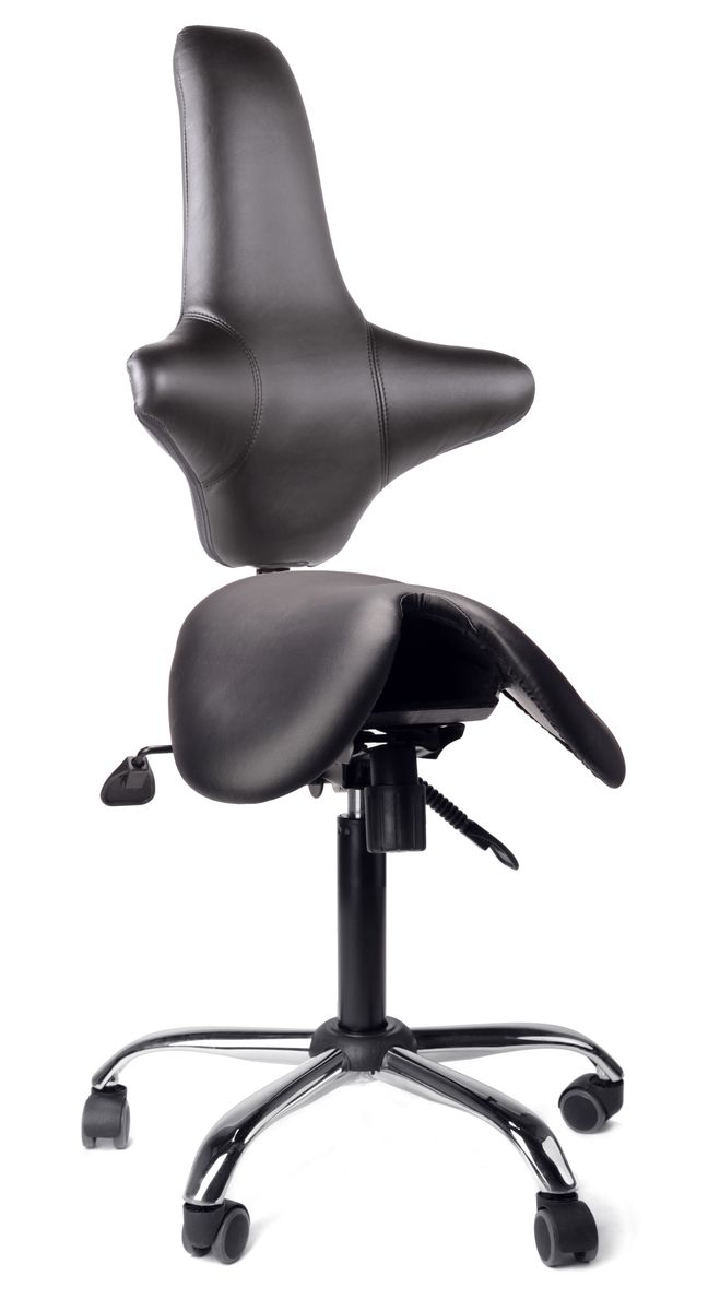 Высокочественное кресло-седло с дополнительной спинкой и возможностью регулировки сиденья по высоте и углу наклона. Особая форма, схожая с седлом для верховой езды, позволяет поддержать высокий комфорт и отменное здоровье пользователя. Обивка выполнена из износостойкой экокожи последнего поколения, а в основании - надёжный металлический каркас.