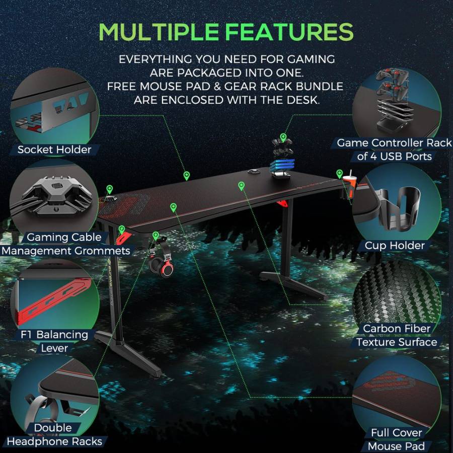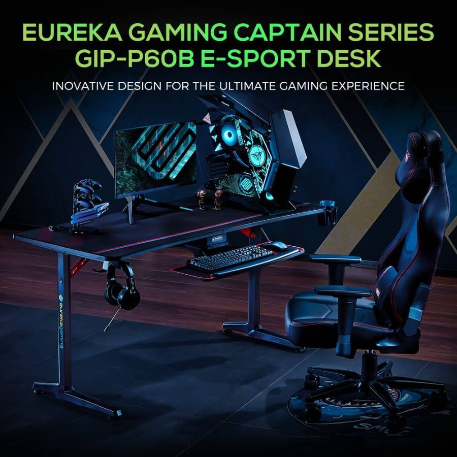Eureka Gaming учитывает ваши различные потребности, поэтому вы можете сосредоточиться на таких важных вещах, как учеба, работа, игры или отдых. EUREKA GIP 60 имеет широкую 60-дюймовую столешницу с поверхностью в стиле "карбон", что позволяет разместить на столе несколько игровых мониторов, Xbox, PS4 и другие ваши игровые девайсы. Благодаря специальной системе управления кабелями, на вашем столе никогда не будет лишних проводов. Столешница оснащена несколькими слотами для укладки кабелей под столом, освобождая пространство для игровых девайсов.. Преимущества Поставляется в комплекте с премиальным ковриком для мыши. Оснащен люверсами для управления кабелями. Уникальная I-образная опорная рама CRS покрыта металлическим покрытием для создания текстурной отделки. Широкая столешница 60 дюймов Держатель геймпадов с четырьмя USB-портами для зарядки, двойной крычок для наушников, подстаканник. Легкий в сборке, перемещении, эксплуатации.Условия покупки