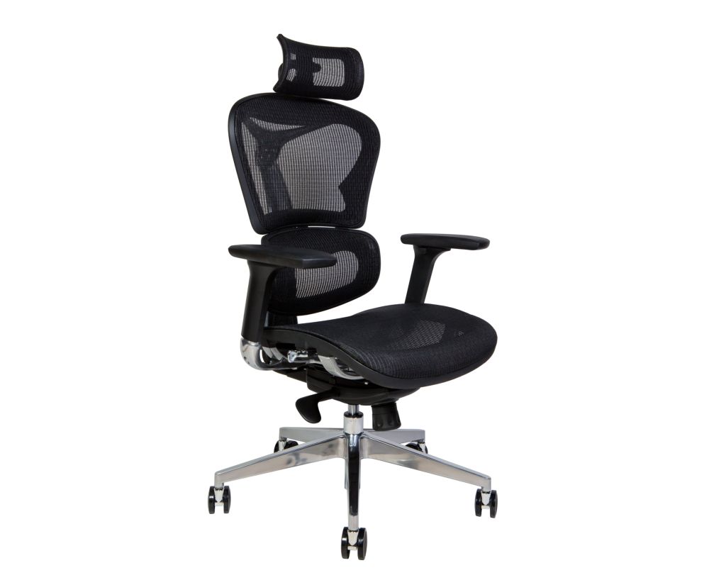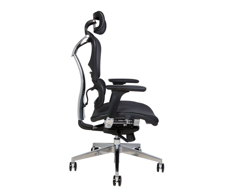Ультрасовременное эргономичное офисное кресло с высокой спинкой. Регулировка высоты и угла подголовника. Многофункциональный механизм с половинным проводным управлением. Задний наклон с 4-позиционным замком, а так же регулировка наклона-натяжения. Регулировка высоты сиденья делает кресло максимально удобным под разный рост. Хромированный алюминиевый задний кронштейн с регулировка высоты спинки указывает на статусность и качество материалов исполнения. Поясничная поддержка. 3Д подлокотники регулируются по высоте, поворачиваются влево и вправо, вперед и назад. Огнеупорная и антиплесневеющая сетка для подголовника, спинки, сиденья