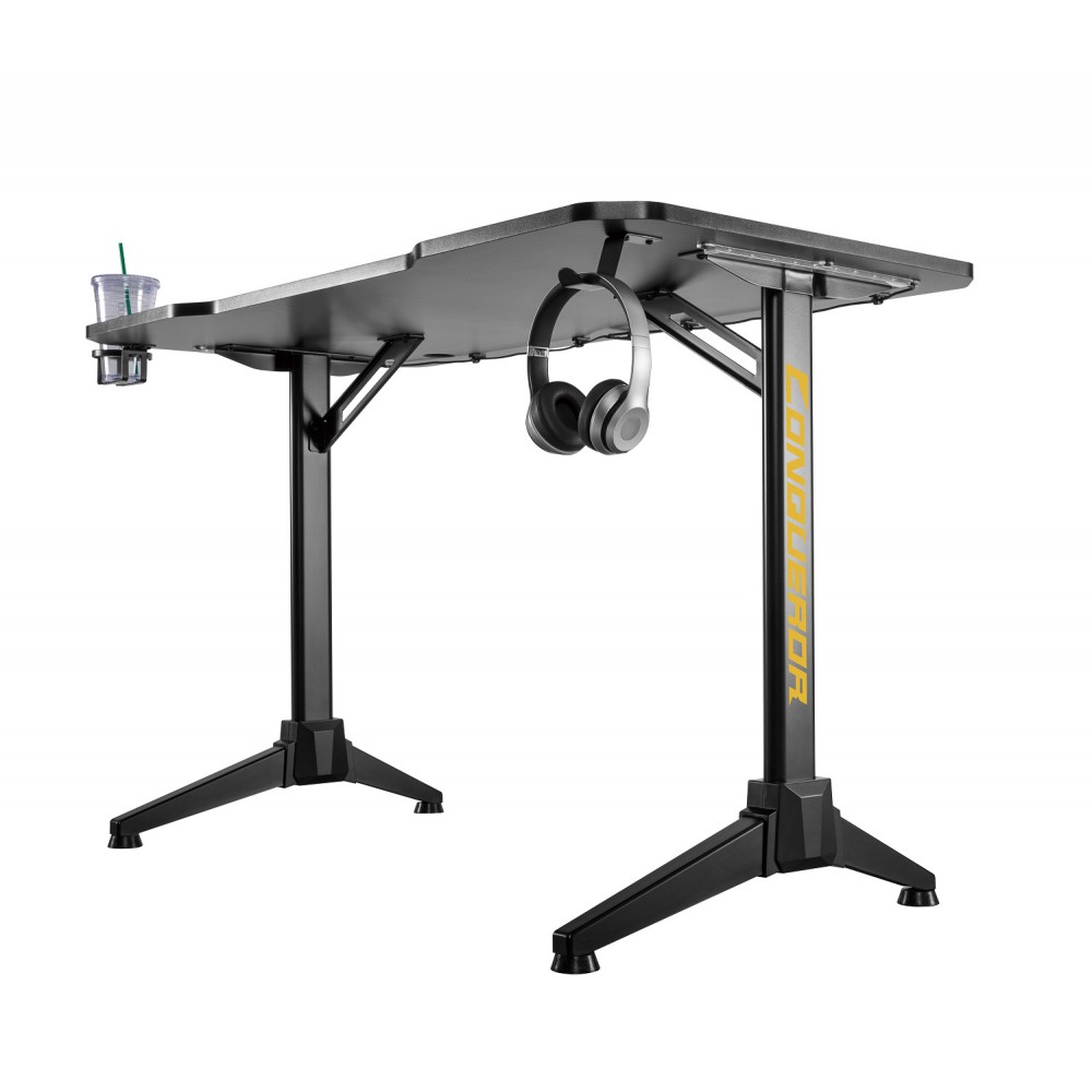 Со столом для геймеров LUMI вы поднимите свою игру на новый уровень! Прочная конструкция стола с эргономичной изогнутой передней частью обеспечивает пользователю полный комфорт,. Встроенная RGB-подсветка создает захватывающую и динамичную игровую атмосферу. Удобный крючок для наушников и подставка для напитков позволяют держать часто используемые предметы под рукой, сохраняя при этом порядок на рабочем столе. Регулируемые ножки обеспечивают повышенную устойчивость на любой поверхности.