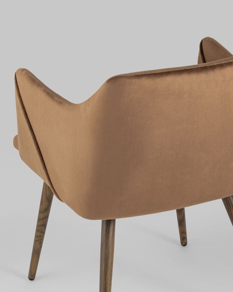 Стильный и мягкий стул имеет широкую эргономичную спинку и удобные подлокотники. Обивкой послужила высококачественная плотная ткань. Ножки стальные с принтом по дерево.Условия покупки