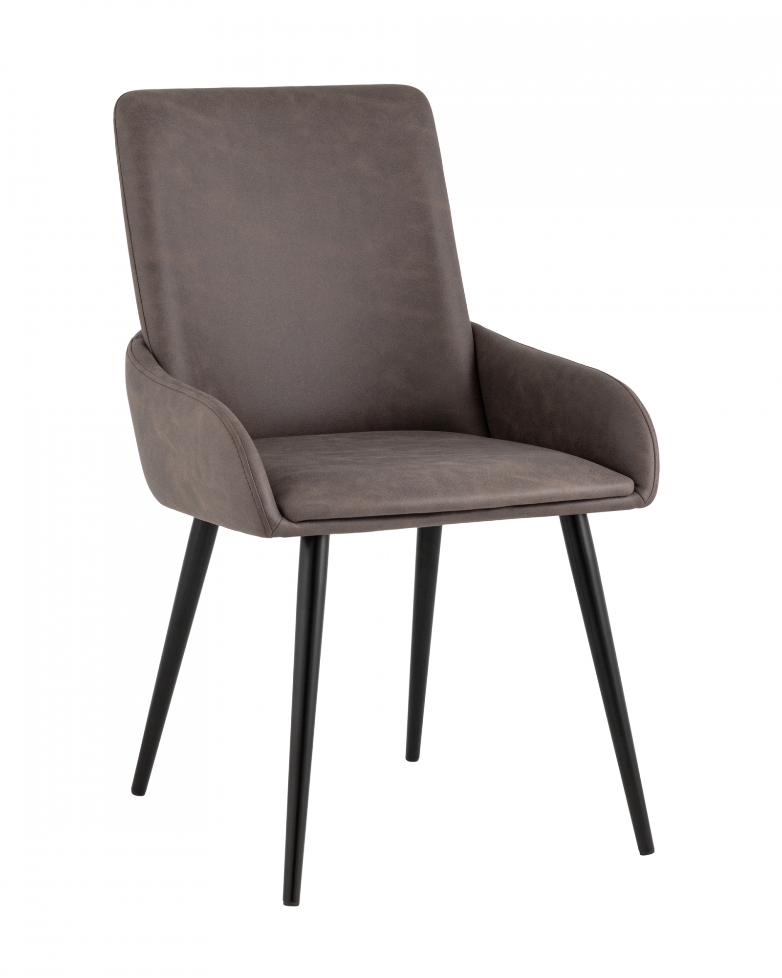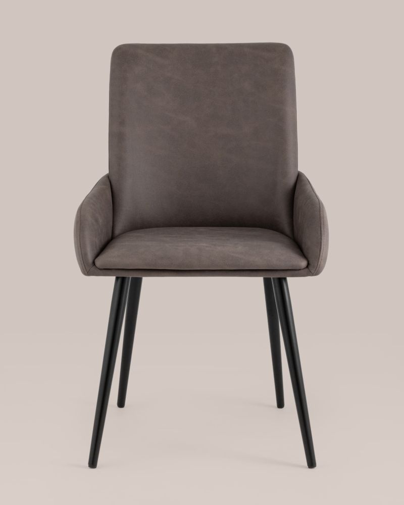 Стильный мягкий кухонный стул с низкими подлокотниками. Красивый дизайн украсит как столовую зону кухни и гостиной, так и дополнит интерьер ресторана или кафе. В качестве обивки используется искусственная замша - прочный износостойкий материал, который неприхотлив в уходе и приятен на ощупь. Крепкие металлические ножки, окрашенные порошковой краской в черном цвете, способны выдерживать большие нагрузки. На ножках дополнительно предусмотрены специальные подпятники, которые предотвращают скольжение и повреждение напольного покрытия.Условия покупки