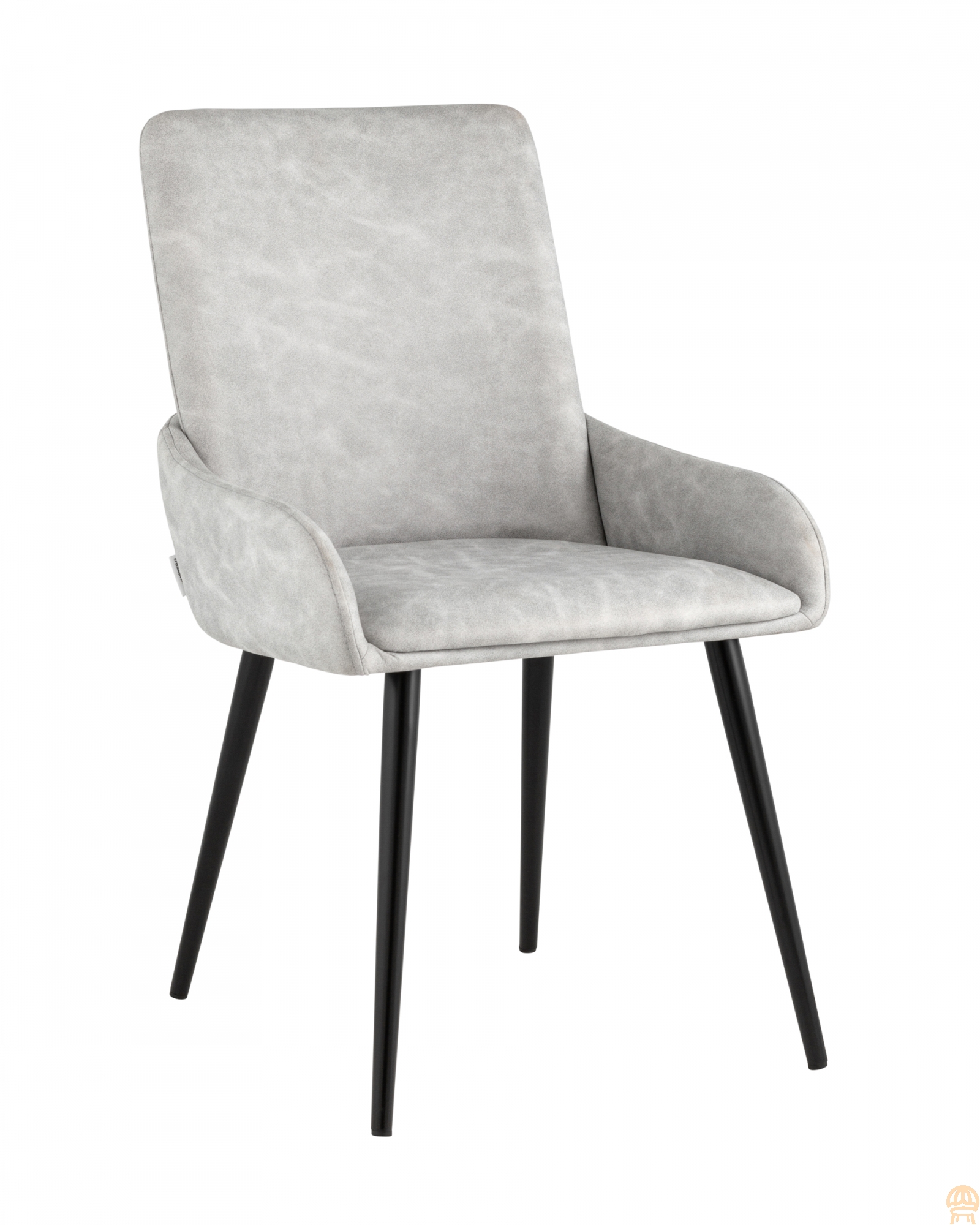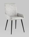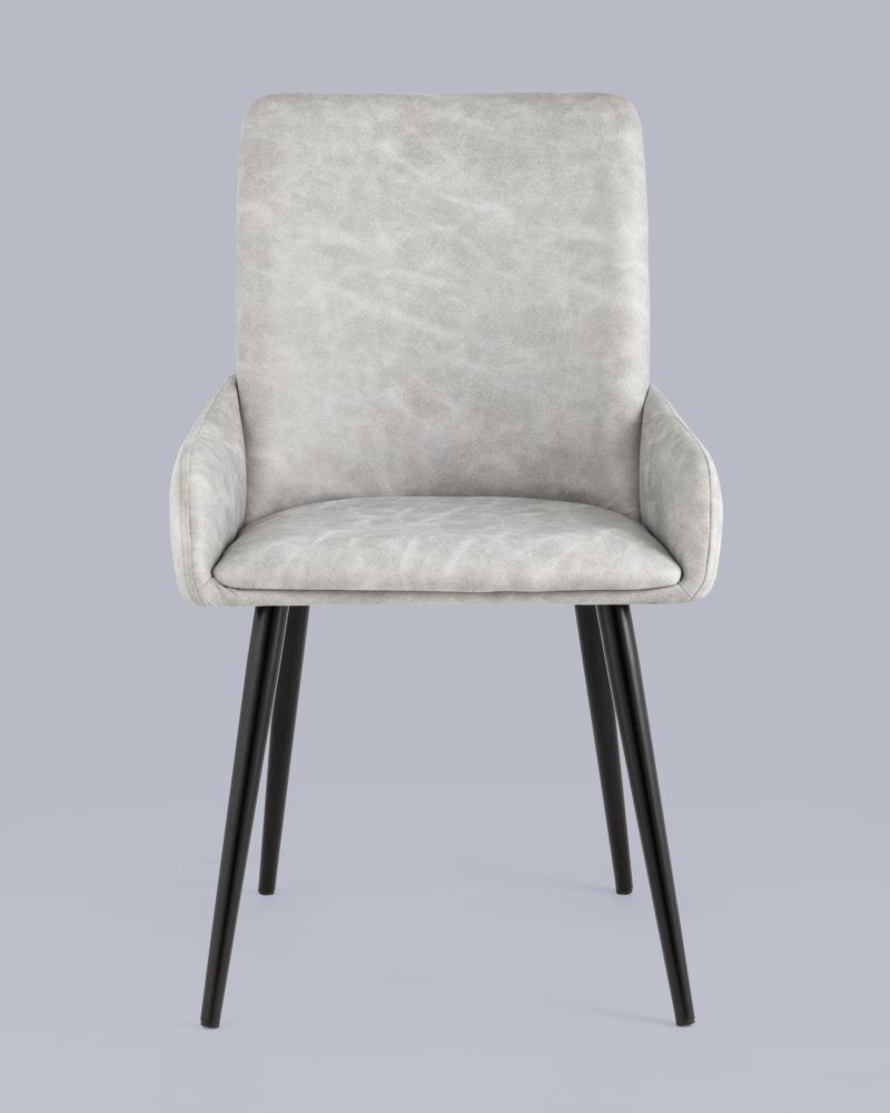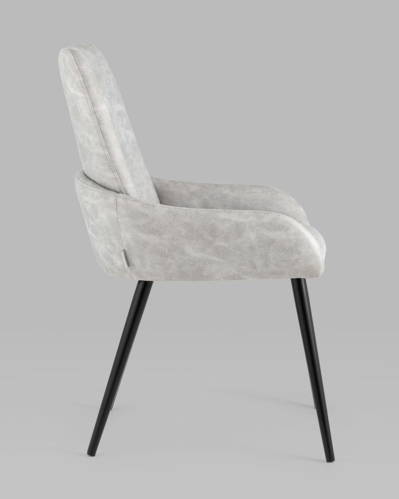 Стильный мягкий кухонный стул с низкими подлокотниками. Красивый дизайн украсит как столовую зону кухни и гостиной, так и дополнит интерьер ресторана или кафе. В качестве обивки используется искусственная замша - прочный износостойкий материал, который неприхотлив в уходе и приятен на ощупь. Крепкие металлические ножки, окрашенные порошковой краской в черном цвете, способны выдерживать большие нагрузки. На ножках дополнительно предусмотрены специальные подпятники, которые предотвращают скольжение и повреждение напольного покрытия.Условия покупки