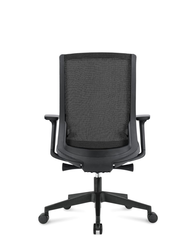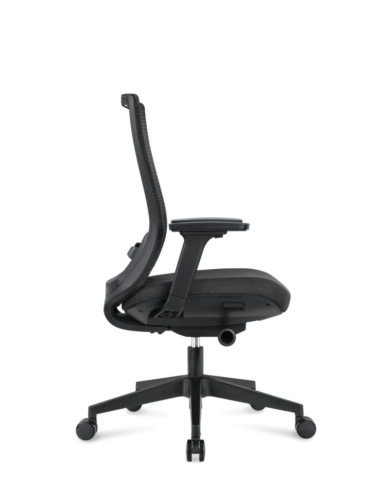 Каркас: черный , Итальянская армированая сетка. Поясничная опора с регулировкой натяжения сетки. Подлокотники: черные регулируемые 4D, с черной накладкой PU ·Наполнение сиденья: ФППУ ·Механизм качения: с фиксацией в четырёх положениях и со слайдером ·Газлифт: 3-класса, ·Крестовина: черная из нейлона ·Колеса: из PU, черные. Сертификат Bifma Максимальная нагрузка 120 кг.