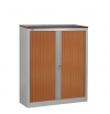 Корпус шкафа и полки окрашены порошковой краской серого цвета RAL 7038. Пластиковые двери-жалюзи шкафа доступны в трëх вариантах: серый, бук и вишня.