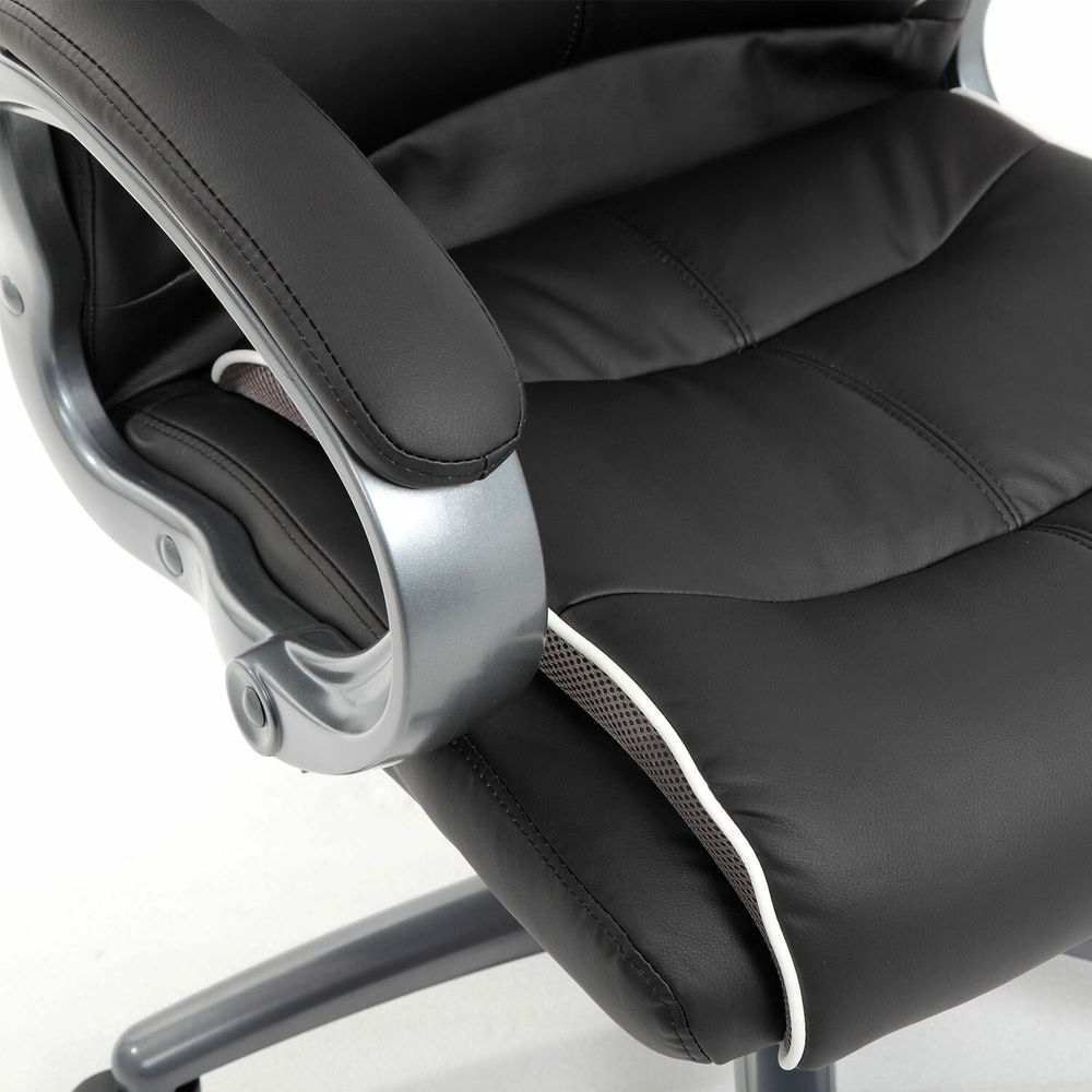 Современная модель актуального дизайна с усиленными элементами конструкции. Максимальная нагрузка до 200 кг Плотная набивка и качественный материал обивки обеспечат высокий уровень комфорта. На кресло распространяется расширенная гарантия 24 месяца. Справиться с повышенной нагрузкой помогают усиленный механизм качания с толщиной металла до 3 мм и специальными поддерживающими распорками, прочный газпатрон высшего 4-го класса, массивный каркас из фанеры толщиной 15 мм, прочное металлическое основание. Обивка выполнена из экокожи высокого качества - современного материала на хлопковой основе. Благодаря тканой основе и пористому полиуретану экокожа отлично пропускает воздух, что положительным образом сказывается на комфорте во время эксплуатации. Материал износоустойчив - кресло сохранит привлекательный внешний вид в течение длительного времени. Боковые вставки серого цвета выполнены из "дышашей" ткани TW, данное решение способствует дополнительной циркуляции воздуха. В набивке кресла использован поролон высокой плотности - это обеспечивает оптимальную поддержку пользователя и препятствует "проминанию" сиденья в ходе эксплаутации. Надежный механизм качания "Top Gun" обеспечивает хорошую поддержку спины и поясницы за счет возможности свободного качания с фиксацией в одном рабочем положении и регулировку угла наклона под вес сидящего. Прочные пластиковые подлокотники имеют мягкие накладки. Качественное, надежное кресло премиального сегмента. Кресла марки Brabix отличаются современным дизайном, эргономикой, аккуратным исполнением и отличным соотношением цены и качества.Условия покупки