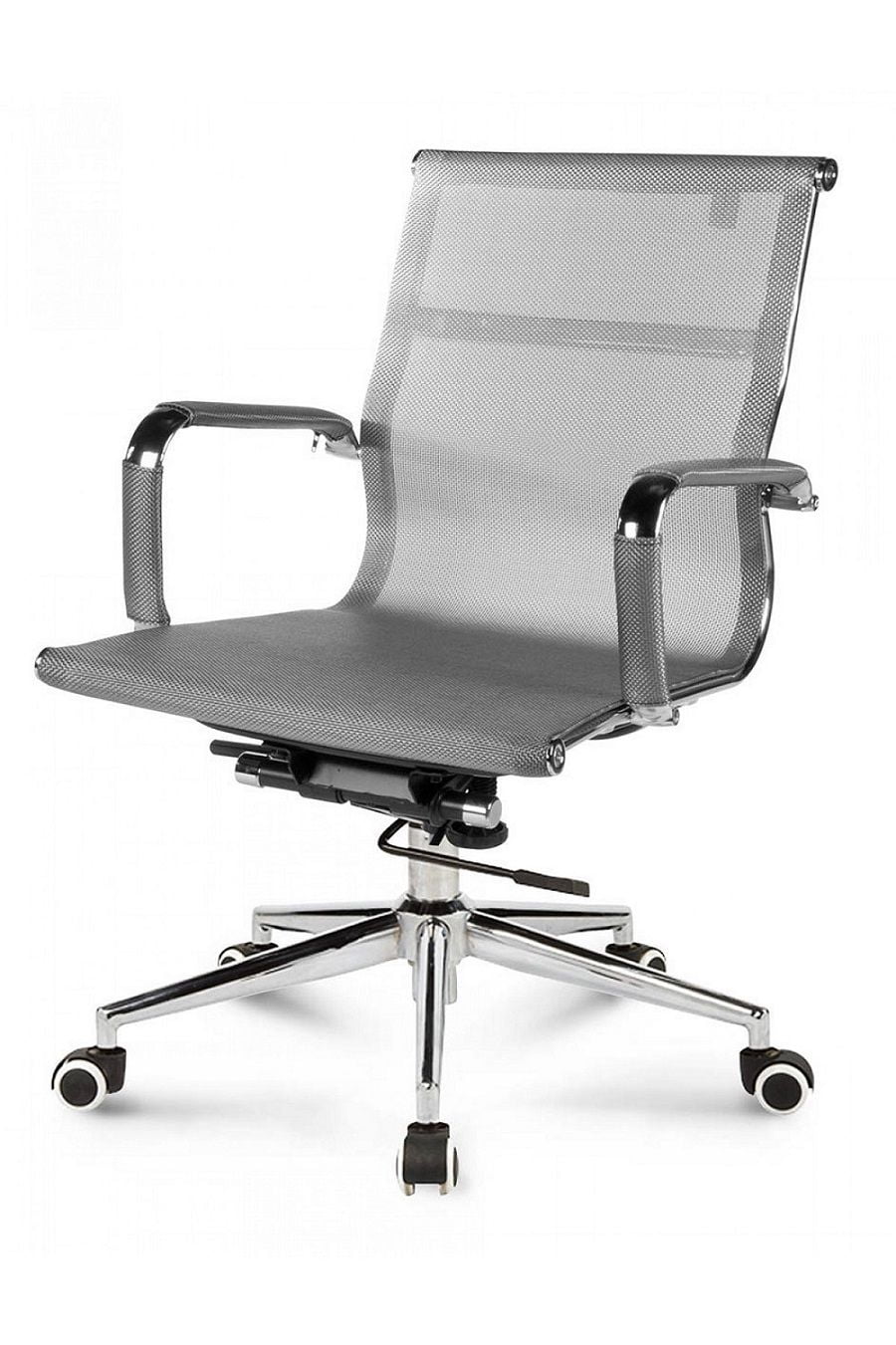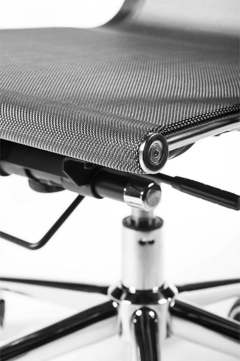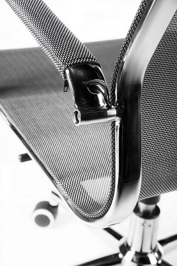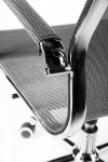 Обычно аналоги данной модели комплектуются более дешевыми крестовинами. В нашей модели крестовина дизайнерская, хромированные лучи переменного сечения сужаются к концам. Это придает креслу изысканный оригинальный вид. Подлокотники защищены съемными сетчатыми чехлами на молниях. Это особенно удобно для тех, кто не любит соприкосновения руками с металлическими подлокотниками. Данная модель выглядит дороже своих аналогов.