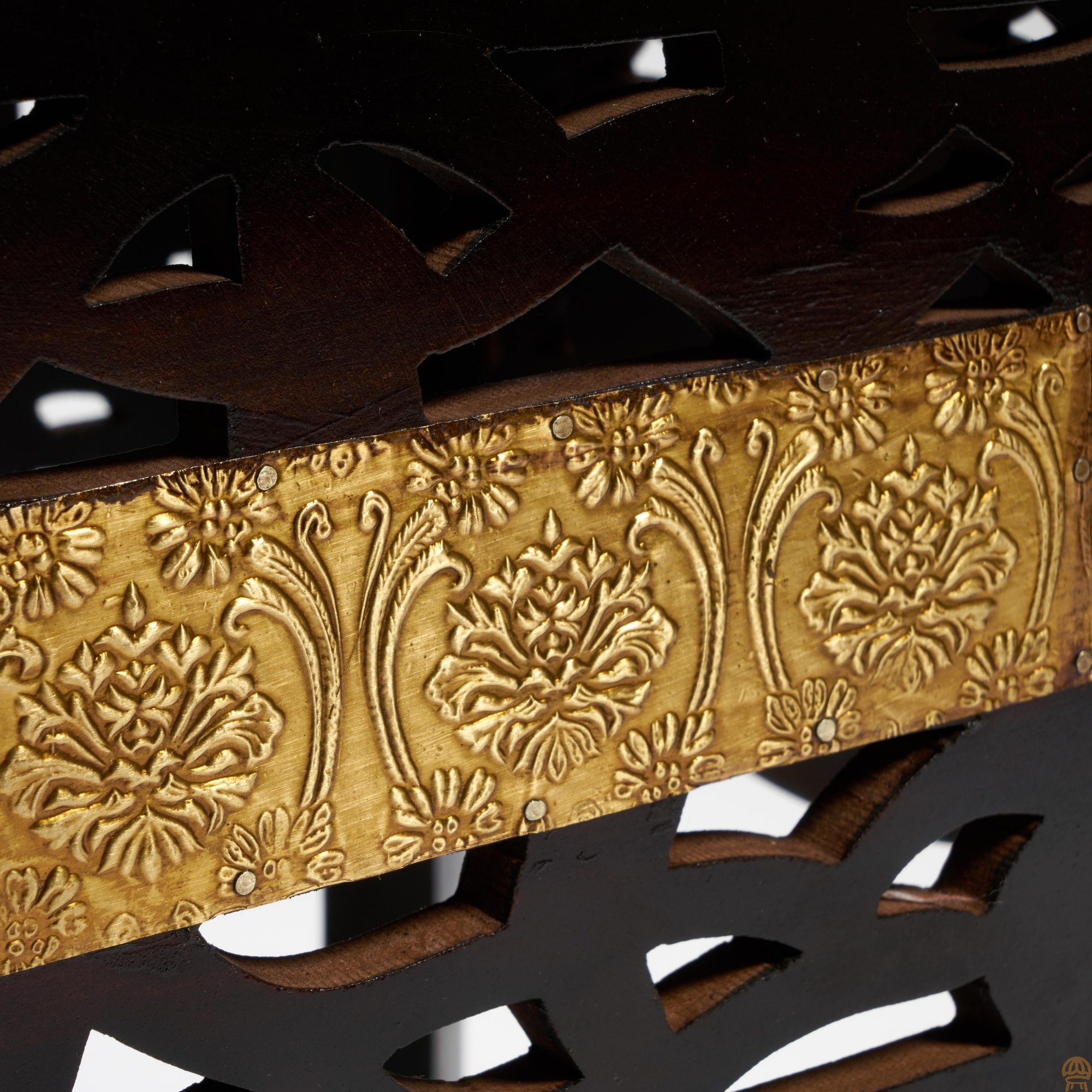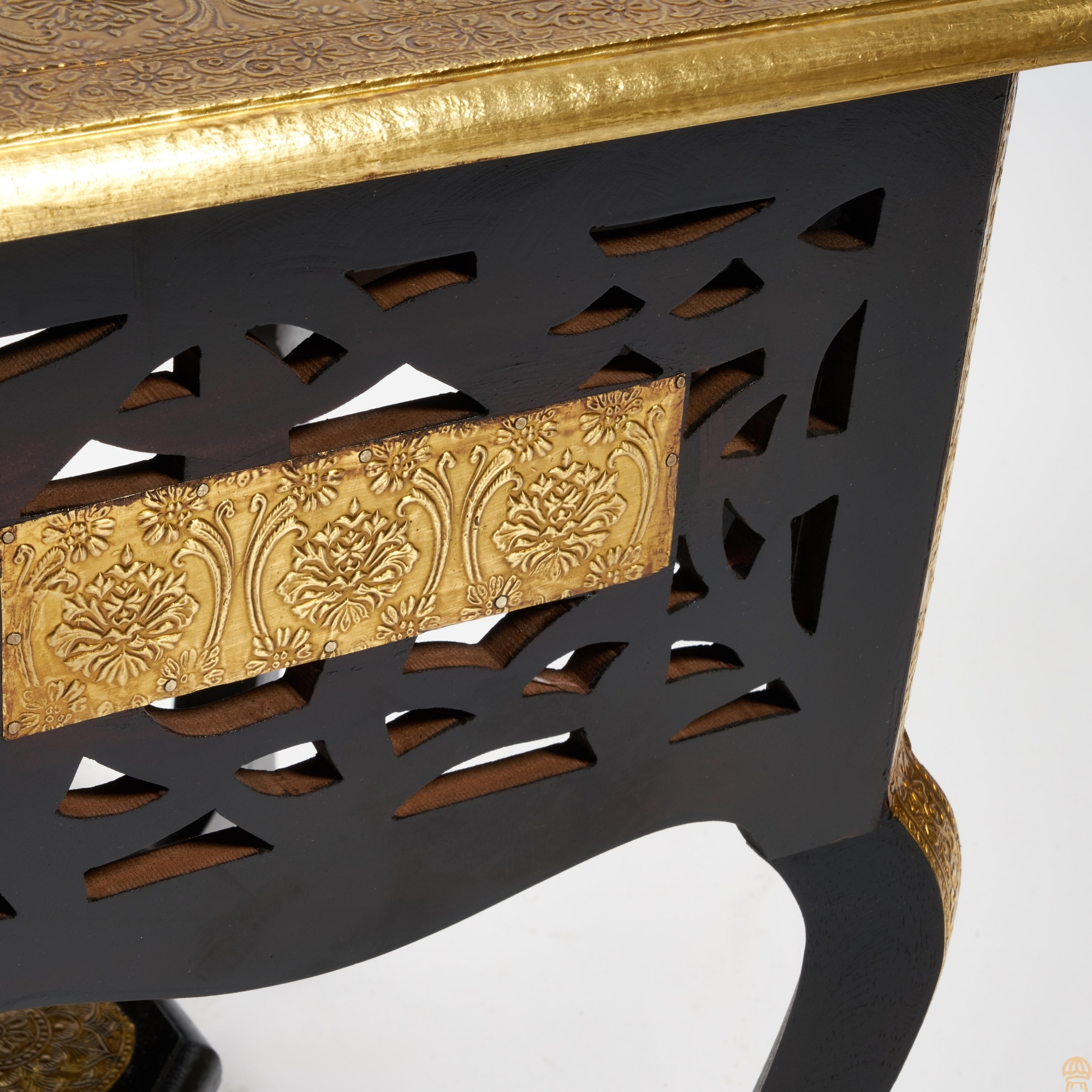 Изумительная красота и отсылка к традициям мастеров древнего Востока удачно сочетаются в дизайне столика Secret De Maison FUMO из коллекции ANTIQUE CLOCKS. Изысканная форма, каркас и столешница из древесины манго с отделкой под латунь и чеканкой ручной работы подчеркивают неповторимый облик изделия. Компактные размеры, легкий вес и простота конструкции позволяют использовать столик, как по прямому назначению, так и в качестве дополнительной сервировочной поверхности или небольшой тумбочки. Древесина манго практична, надежна, проста в уходе и прослужит долгие годы, сохраняя свой первоначальный вид. Столик относится к коллекции ANTIQUE CLOCKS, поставляется в собранном виде. Страна-производитель: ИНДИЯ