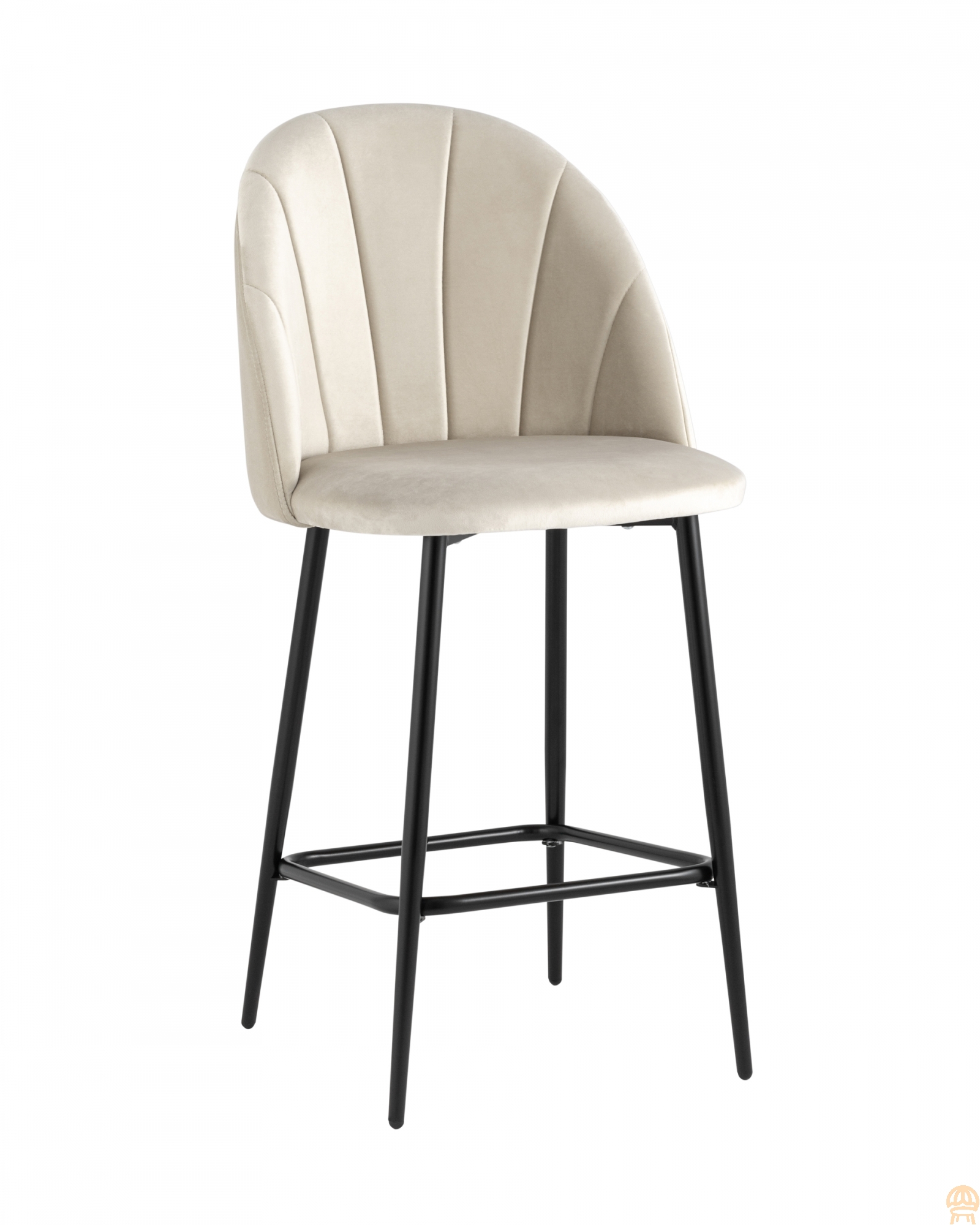 Полубарный стул Логан в велюровой обивке можно использовать в обустройстве кухонь, гостиных, ресторанов или кафе. Модель подходит для современных и смешанных интерьеров. Сидение обтянуто мебельным велюром приятным на ощупь износостойким, гигроскопичным материалом. Ткань обладает способностью быстро восстанавливать первоначальную форму после механического воздействия или намокания. Обивка на спинке имеет вертикальную стежку в виде веера. Ножки изготовлены из металла и окрашены в черный цвет.Условия покупки