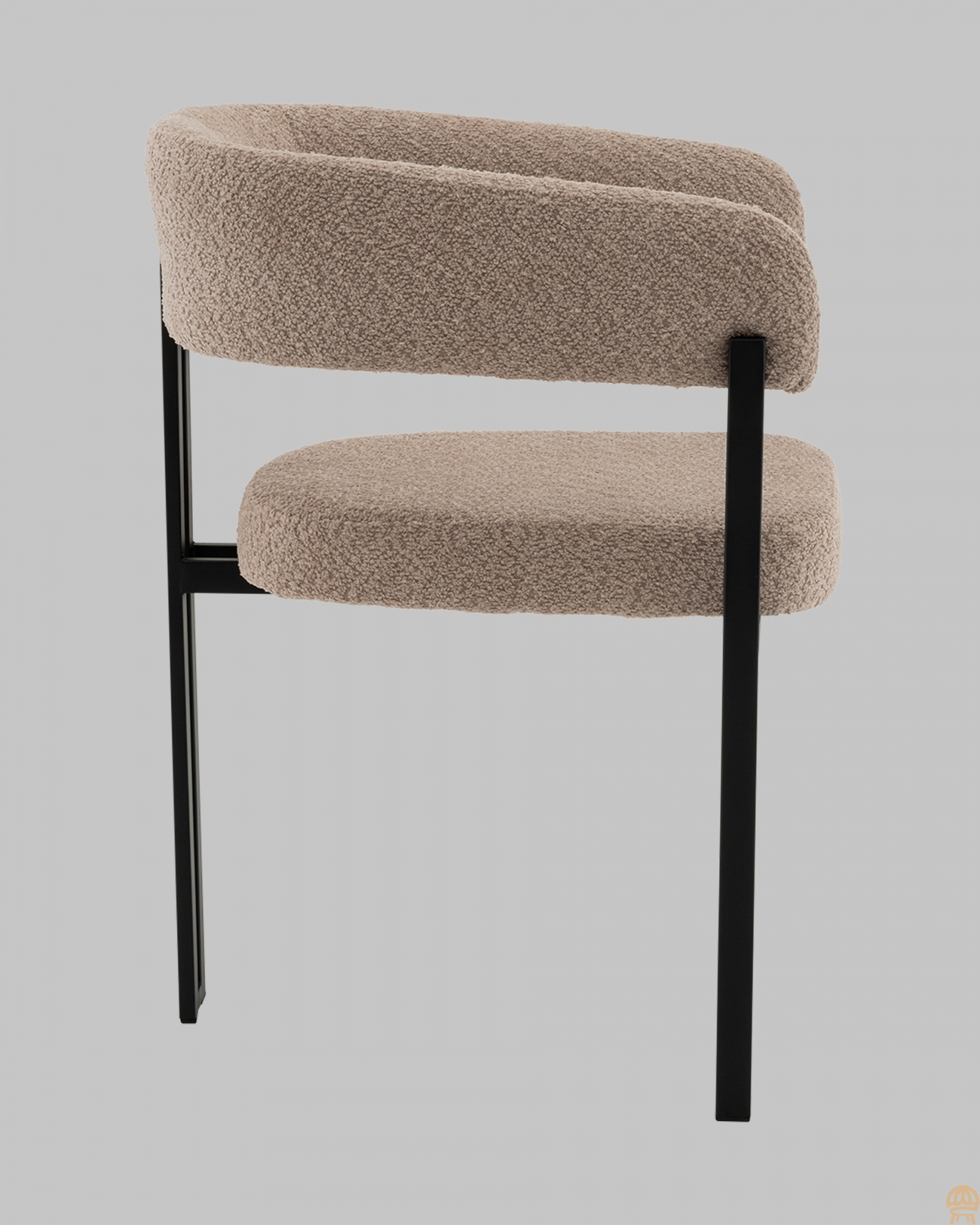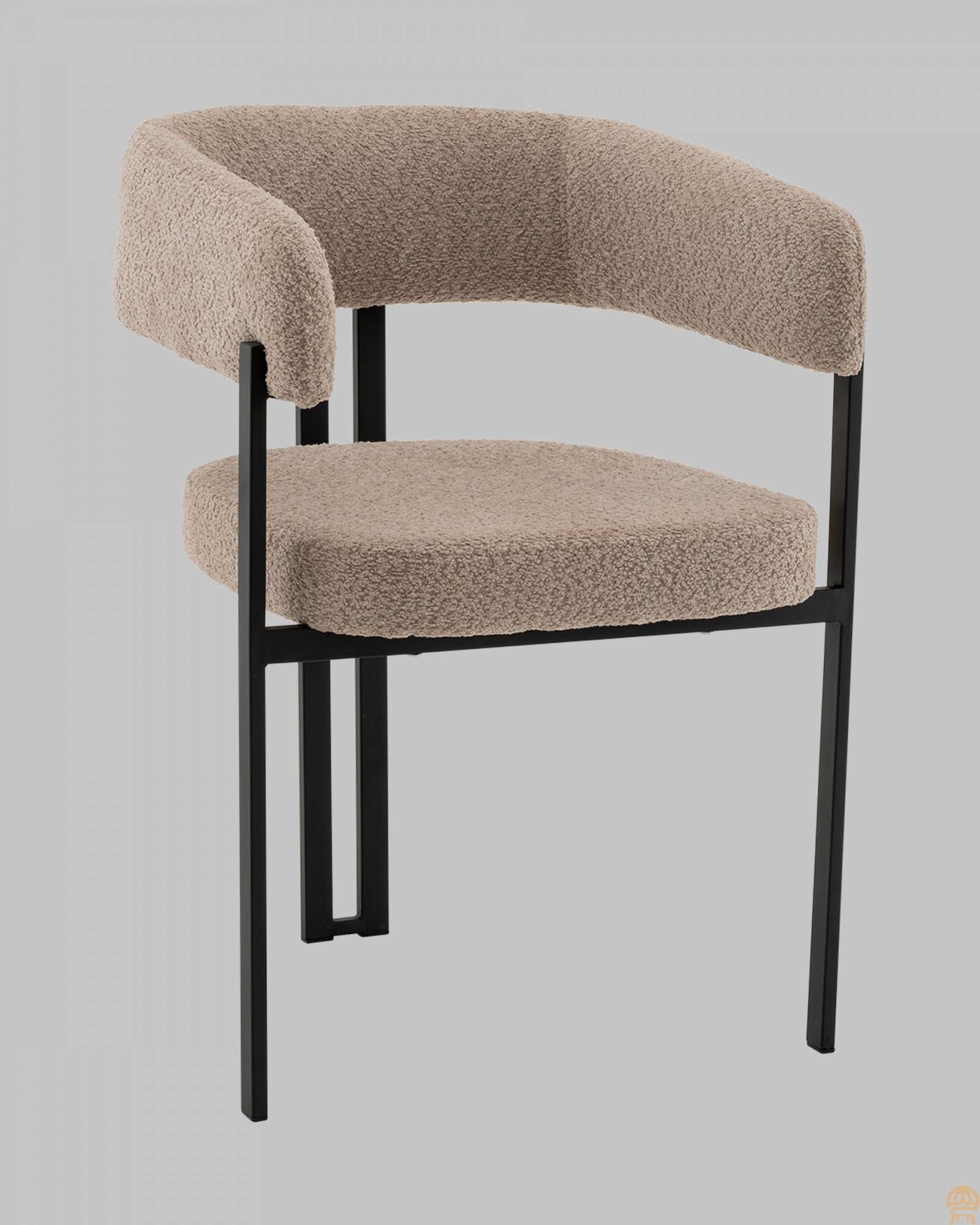 Современный уют в лаконичном исполнении Стул для кухниСеренидат сочетает строгие линии и мягкий комфорт. Обивка из светло-серого букле придаёт изделию тактильную теплоту и современный облик, делая его стильным акцентом в интерьере. Чёрный металлический каркас подчёркивает геометрию силуэта и добавляет выразительности, создавая гармоничный контраст. Продуманный комфорт для ежедневного использованияШирокое сиденье и плавно изогнутая спинка с подлокотниками обеспечивают удобную посадку и поддержку для спины и рук. Прочная металлическая конструкция выдерживает нагрузку до 120 кг, гарантируя надёжность даже при интенсивной эксплуатации дома, в офисе или кафе. Универсальное решение для интерьераБлагодаря сдержанной цветовой гамме и минималистичному дизайнуобеденный стул Серенидатлегко впишется в современный, скандинавский или лофт-интерьер. Он станет не только удобным местом для отдыха, но и стильной деталью, подчеркивающей вкус и характер вашего пространства.Условия покупки
