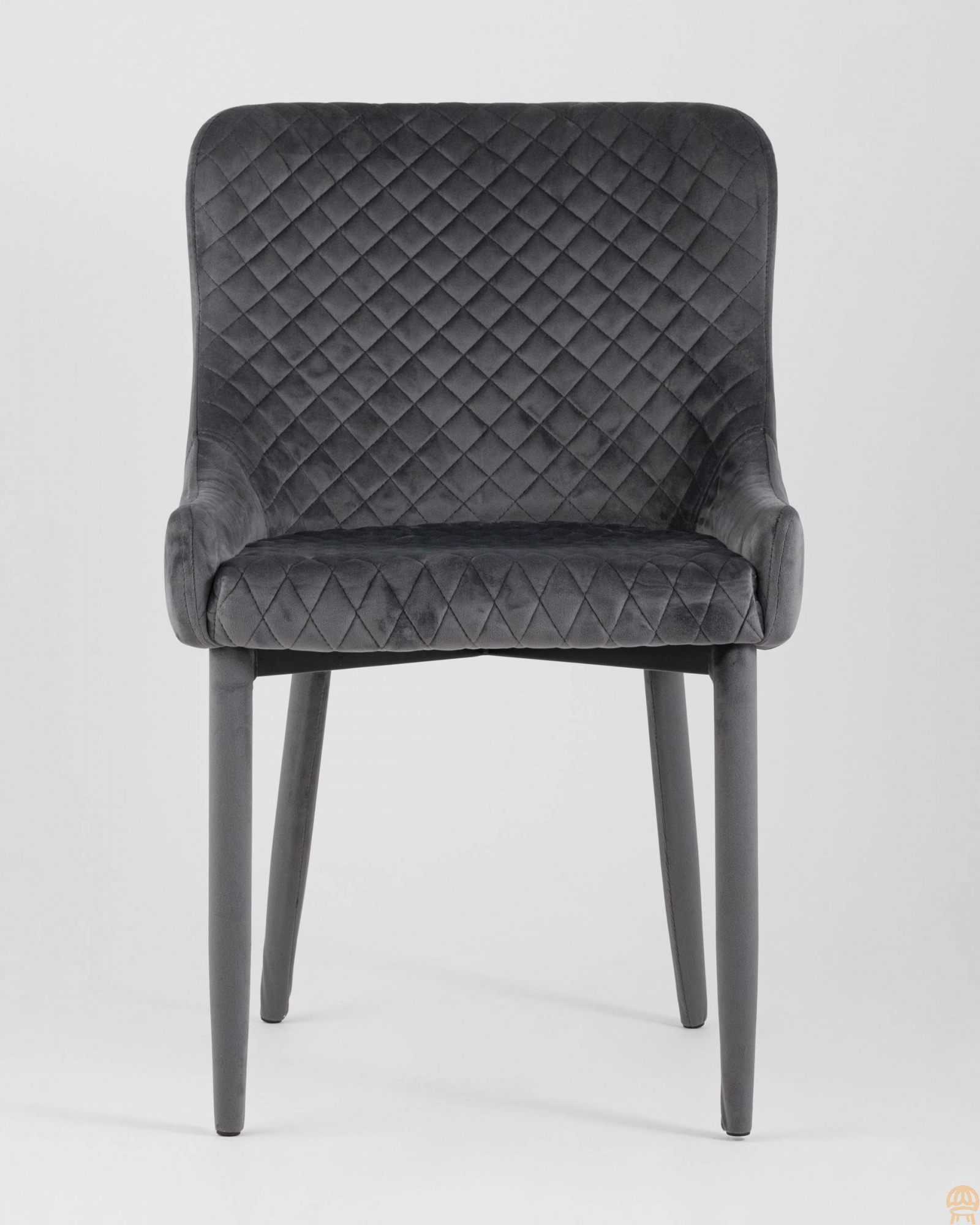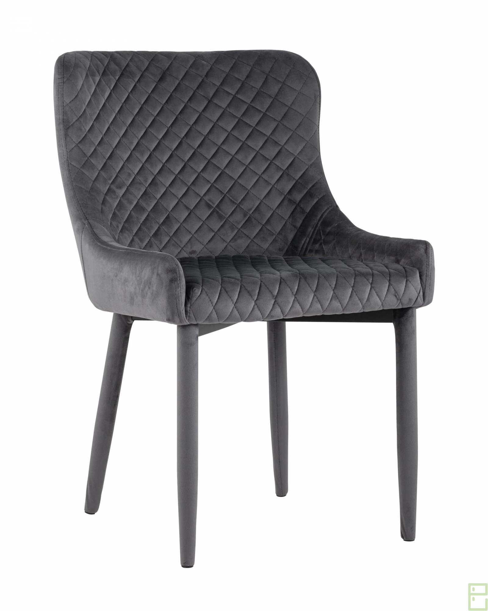 Мягкое прямоугольное сиденье с невысокой спинкой анатомической формы подарит комфорт и уют. В качестве обивки используются прочные износостойкие материалы с декором в виде ромбов. Прямые ножки обиты велюром и имеют нестандартную форму в виде перевернутого конуса, поэтому обеспечивают хорошую устойчивость и делают стул оригинальным. Изделие прекрасно смотреться как отдельный предмет мебели, так и в комплекте с обеденным столом.Условия покупки