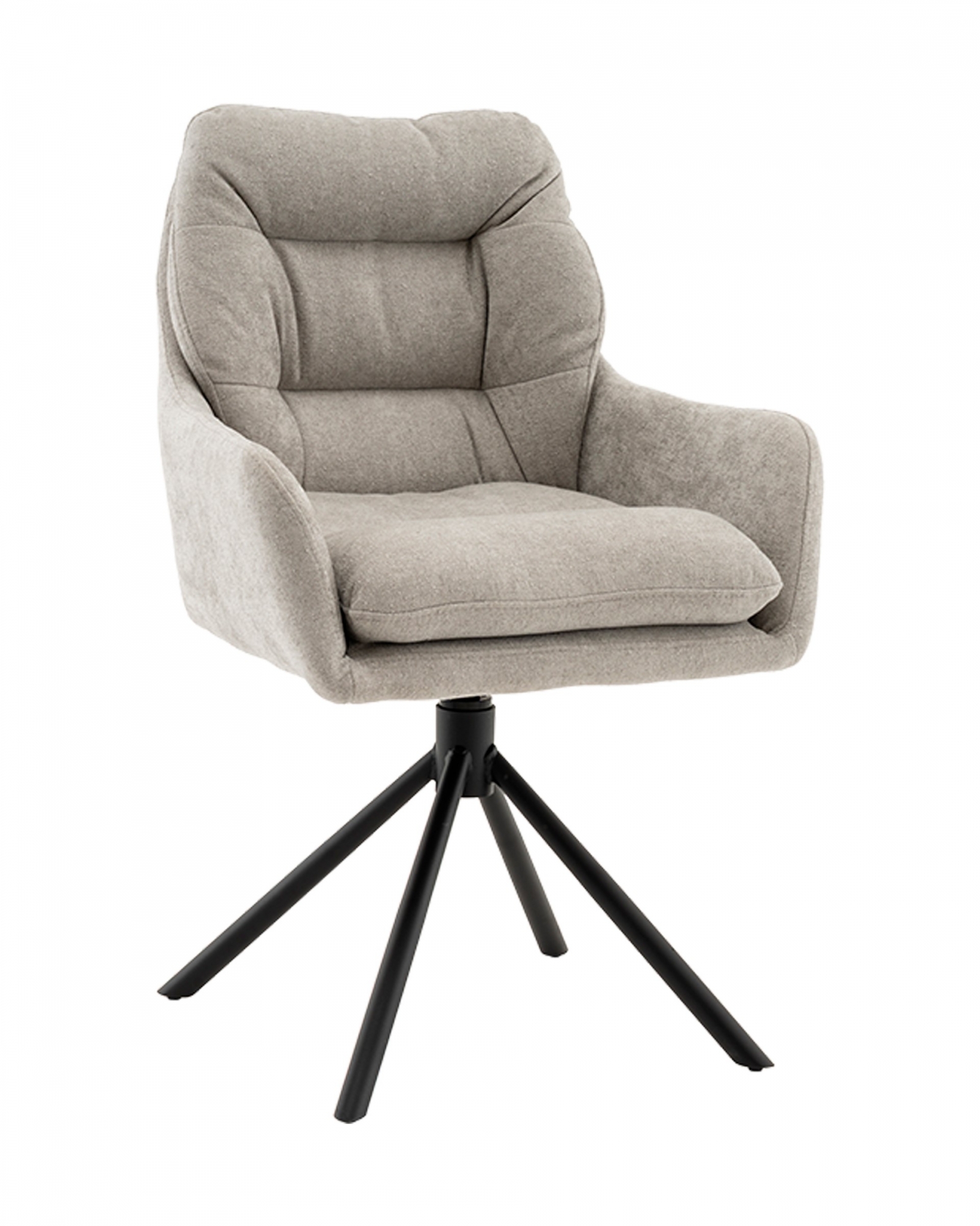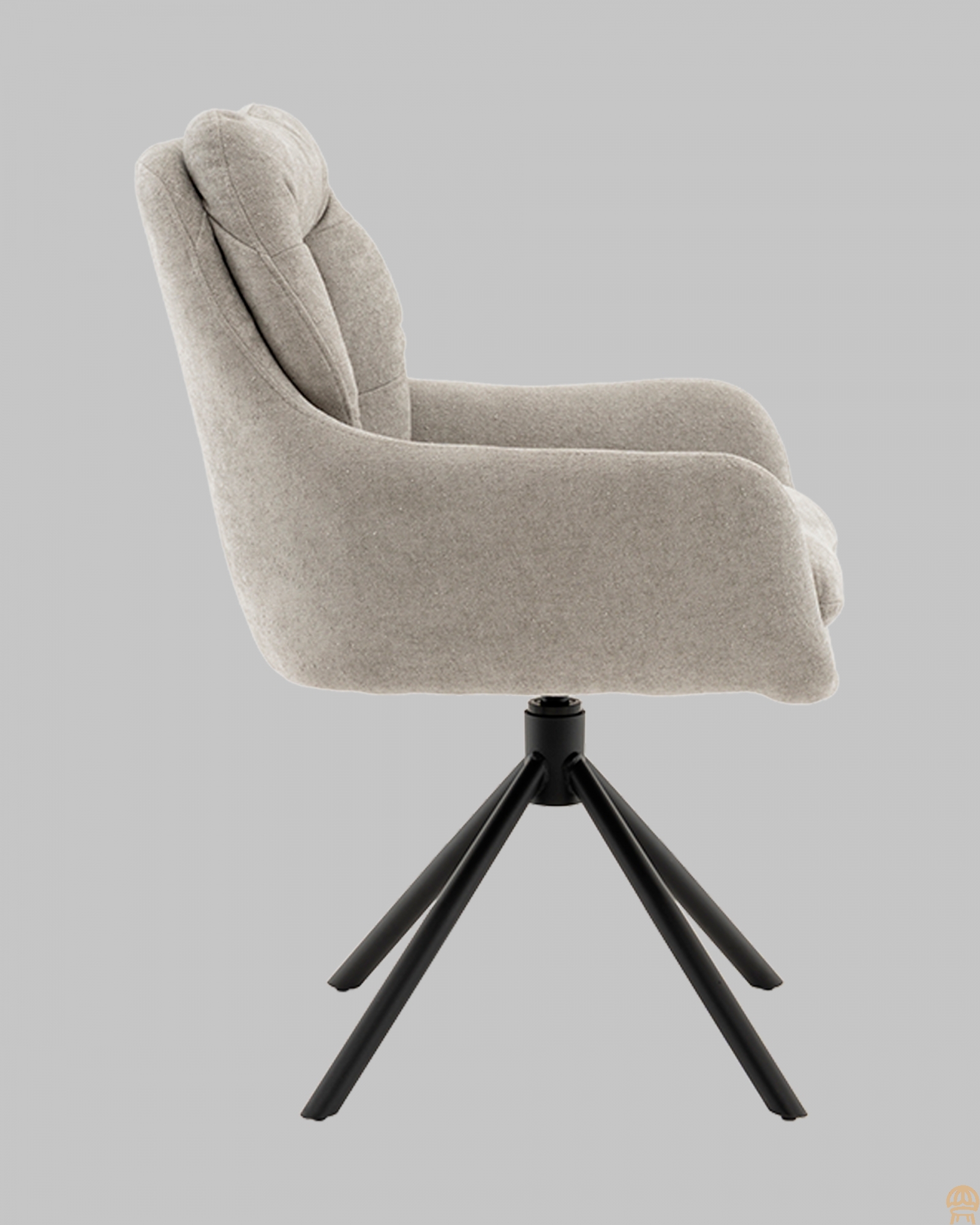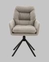 Современный комфорт с мягким характером СтулРальфиосочетает уютный дизайн и функциональные решения для ежедневного комфорта. Обивка из приятного на ощупь букле в светло-сером оттенке добавляет интерьеру тепло и текстурный акцент, а объёмная простёжка на спинке и сиденье придаёт модели расслабленный, домашний вид. Удобство и функциональность в деталяхВысокая спинка с анатомическим изгибом и мягкие подлокотники обеспечивают комфортную поддержку во время отдыха или работы.Встроенный поворотный механизм с функцией возврата позволяет вращаться на 360 и автоматически возвращает сиденье в исходное положение, повышая удобство при общении и сохраняя аккуратный вид. Прочная металлическая база с четырьмя ногами гарантирует устойчивость и выдерживает нагрузку до 100 кг. Идеальное решение для интерьераСтулРальфиостанет стильным и функциональным элементом гостиной, кабинета или кухни. Универсальный цвет и современный силуэт позволяют легко вписать его в интерьеры в стиле модерн, сканди или минимализм, делая пространство уютным и удобным для жизни.Условия покупки