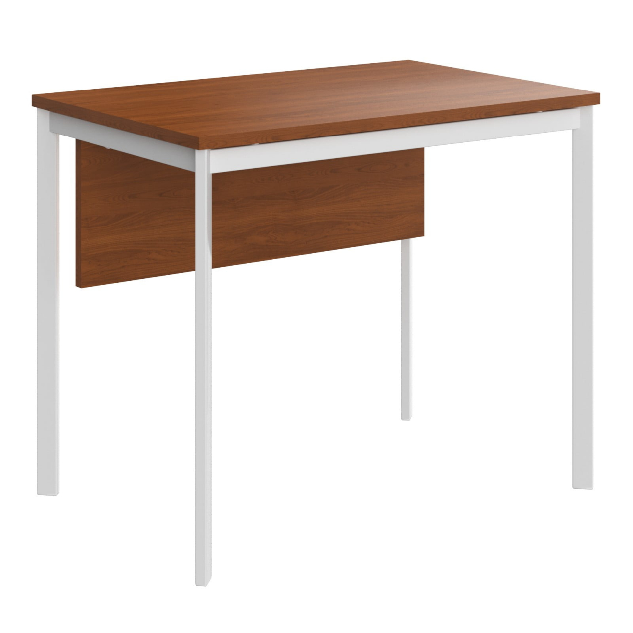 Столешница из ЛДСП т.22мм. Металлокаркас из трубы 40х20х1,5мм. без регулировки внизу. Опоры столов комплектуются пластиковой заглушкой. Покрытие краска белая полуматовая или алюминий. Металлокаркас соединяется со столешницей через металлическую проставку D-16мм. H-6мм. Комплектуется фронтальной панелью из ЛДСП т. 18мм. крепится к столешнице при помощи уголков.Условия покупки