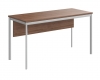 Столешница из ЛДСП т.22мм. Металлокаркас из трубы 40х20х1,5мм. без регулировки внизу. Опоры столов комплектуются пластиковой заглушкой. Покрытие краска белая полуматовая или алюминий. Металлокаркас соединяется со столешницей через металлическую проставку D-16мм. H-6мм. Комплектуется фронтальной панелью из ЛДСП т. 18мм. крепится к столешнице при помощи уголков.Условия покупки