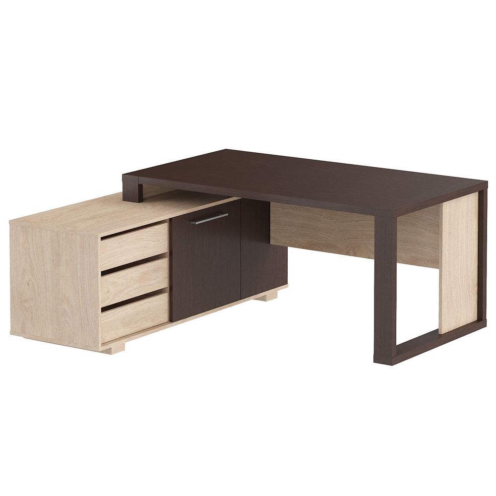 Руководитель это не только статус и права. И не только обязанности и ответственность. Это еще и его окружение и люди, и вещи, и предметы интерьера. Правильно выбранное окружение ощутимая доля успеха руководителя. Характеристики Толщина столешницы 38 мм. Опоры столов Рамочные, с контрастной декоративной вставкой. Основной материал трехслойное экологически чистое ДСП, класс эмиссии Е1 пр-во Польша Материал покрытия износоустойчивый ламинат с пропиткой меламиновыми смолами пр-во Польша Защита торцевых поверхностей основных элементов кромка ПВХ, толщина 2 мм. пр-во Германия Защита торцевых поверхностей дополнительных элементов кромка ПВХ, толщина 2 мм. пр-во Германия Лицевая фурнитура Материал металл, цвет алюминий пр-во Польша Регулируемые опоры столов и шкафовметаллические с пластиковым основанием, диапазон регулировок до 15 мм. пр-во Дания Ящики тумб фолдинг 12 мм. пр-во Италия Замки на тумбах центральные пр-во Германия Силовые сочленения четырехкомпонентные эксцентриковые стяжки пр-во Германия Упаковка многослойный гофрокартон, пенопласт, пластиковые уголкиУсловия покупки