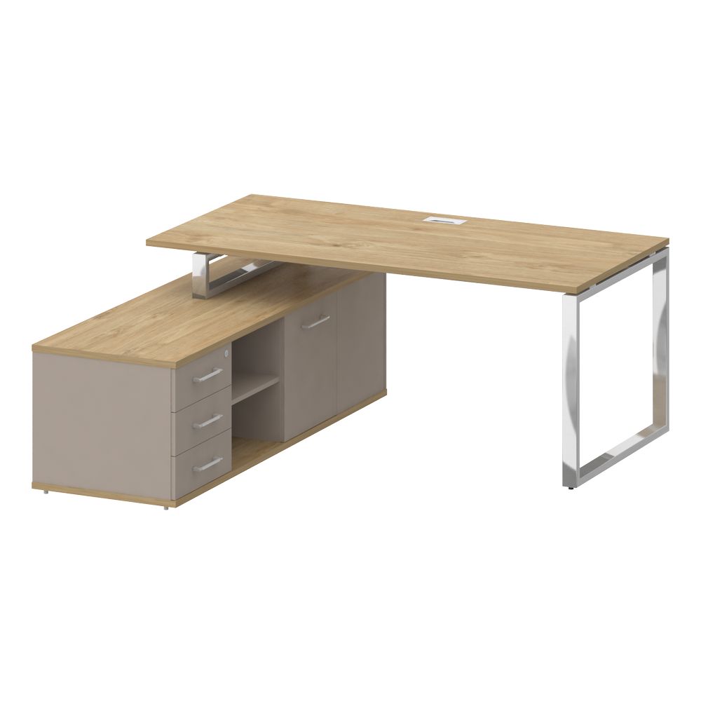 Стол руководителя с опорной греденцией , левый Рива SHIFT SK.SRG-180 L Тиквуд Светлый/Капучино