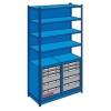 Система хранения имеет широкий ассортимент дополнений: ящиков, полок, боковых и задних панелей, перфорированных панелей и т. д.