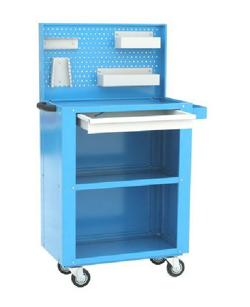 Тележка инструментальная Rommel с тремя полками, ящиком и экраном, держателями и полками