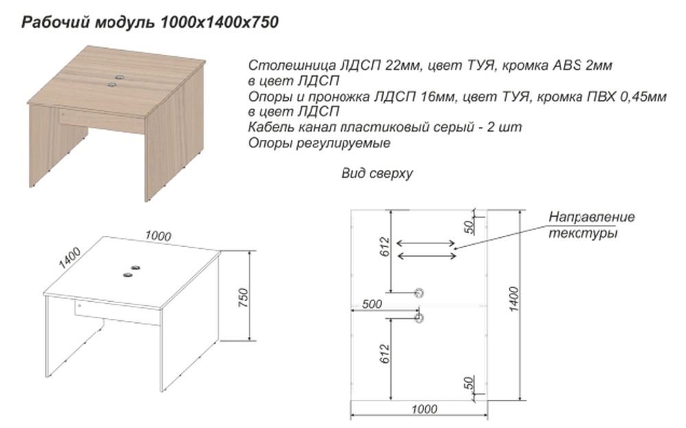 Рабочий модуль Twin 1000x1400x750 с 2-мя кабель-каналами Туя-З - это качественное изделие, производимое компанией Персона грата, в соответствии с действующими государственными стандартами.