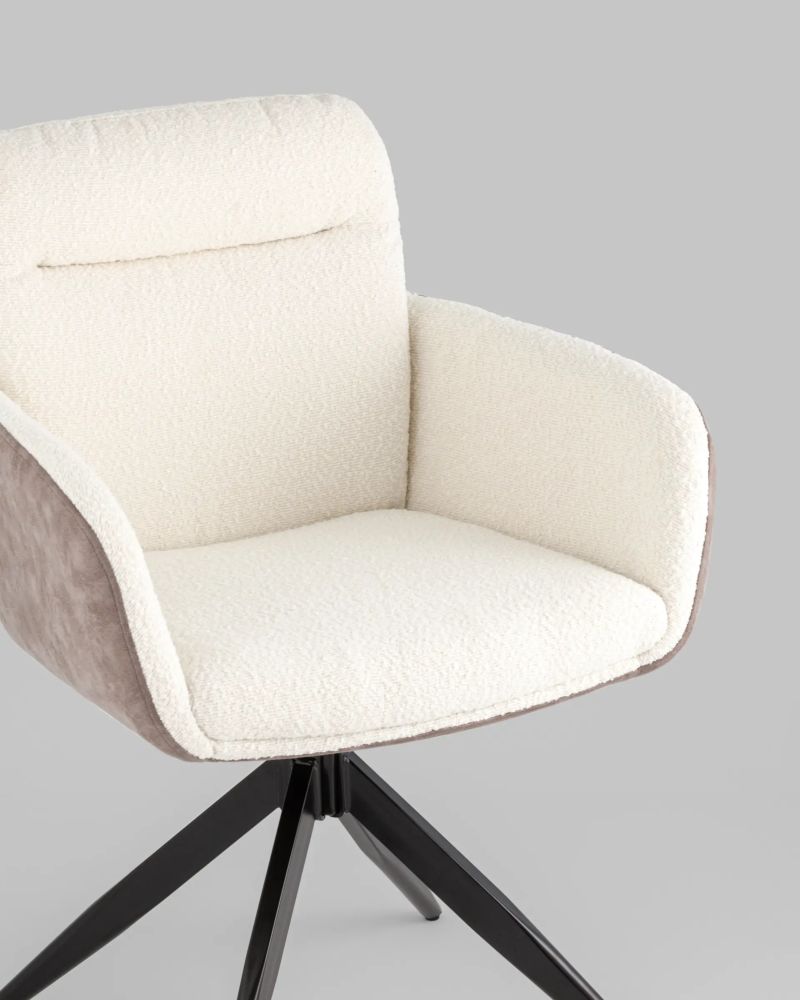 Современный обеденный стул Waldo станет прекрасным дополнением кухни, гостиной или рабочего места. Комбинация фактурной ткани "тедди" и экокожи создают уникальный образ модели. Внутренняя сторона спинки и сиденья украшена геометричной стежкой. Металлические ножки способны выдерживать значительные нагрузки на опору. Подпятники препятствуют скольжению и помогут защитить напольное покрытие от царапин. Модель стула оборудована поворотно-возвратным механизмом если повернуться на стуле и встать, то сиденье вернется в исходное положение.Условия покупки