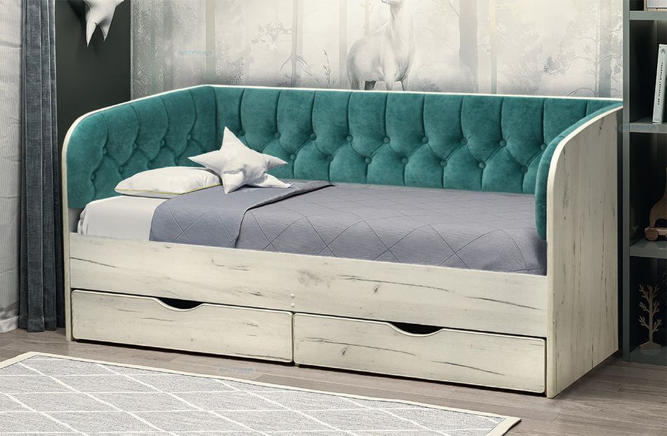 Серия кроватей Софа это линейка удобной и функциональной мебели для детей. Благодаря многообразию расцветок каркаса и обивки можно подобрать вариант, который впишется пространство детской. Особенности односпальная кровать простой дизайн без излишнего декора гармоничное сочетание цветов продольная мягкая спинка и боковины превращают кровать в диван два выкатных ящика для хранения ящики оснащены колесами-роликами основание кровати ладе из пиломатериала 6 цветов каркаса 22 цвета обивки спинки каркас кровати выполнен из ЛДСП класса Е1 с кромкой ПВХ обивка спинки велюр матрас в комплект не входит производство Россия максимальная нагрузка на спальное место 83 кг рекомендуемая высота матраса не более 20 см. Кровати этой серии многофункциональны, эргономичны, удобны, просты и долговечны в процессе эксплуатации. Прочное покрытие обеспечивает защиту от истирания, мелких сколов и царапин. Мягкая спинка кровати создает дополнительный комфорт для отдыха. Кровати Софа отличное решение для обеспечения комфортных условий для сна и отдыха.Условия покупки