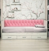 Серия кроватей Софа это линейка удобной и функциональной мебели для детей. Благодаря многообразию расцветок каркаса и обивки можно подобрать вариант, который впишется пространство детской. Особенности односпальная кровать простой дизайн без излишнего декора гармоничное сочетание цветов продольная мягкая спинка превращает кровать в диван 3 выкатных ящика для хранения ящики оснащены колесами-роликами основание кровати ладе из пиломатериала 6 цветов каркаса 22 цвета обивки спинки каркас кровати выполнен из ЛДСП класса Е1 с кромкой ПВХ обивка спинки велюр матрас в комплект не входит производство Россия максимальная нагрузка на спальное место 83 кг рекомендуемая высота матраса не более 20 см. Кровати этой серии многофункциональны, эргономичны, удобны, просты и долговечны в процессе эксплуатации. Прочное покрытие обеспечивает защиту от истирания, мелких сколов и царапин. Мягкая спинка кровати создает дополнительный комфорт для отдыха. Кровати Софа отличное решение для обеспечения комфортных условий для сна и отдыха.Условия покупки