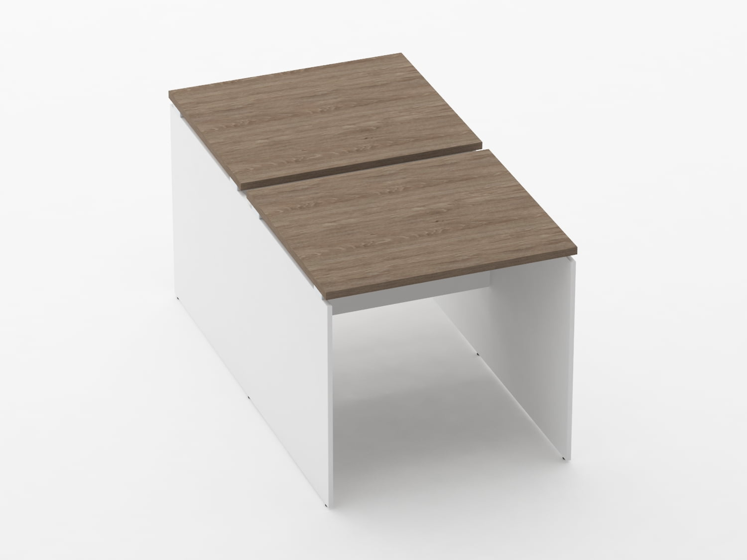 Рабочий модуль на опорах ЛДСП. Столешницы выполнены из ЛДСП толщиной 22мм с кромкой ПВХ 2мм. Опоры рабочего модуля изготовлены из ЛДСП 16мм. В производстве используется экологически чистая ДСП покрытая износостойким ламинатом (класс эмиссии Е1, производство Россия). Столешницы за счет специальных ножек-проставок немного приподняты над каркасом. Рабочий модуль выпускается в сочетании двух цветов: белого (опора и царга) и древесного (столешницы).
