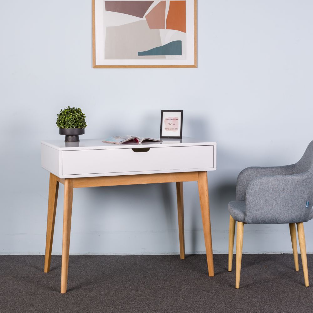 Стол письменный Nikko станет украшением вашего дома. Ножки столика выполнены из массива натурального дерева. Столешница, износостойкая, выполнена из ЛДСП в белом цвете.